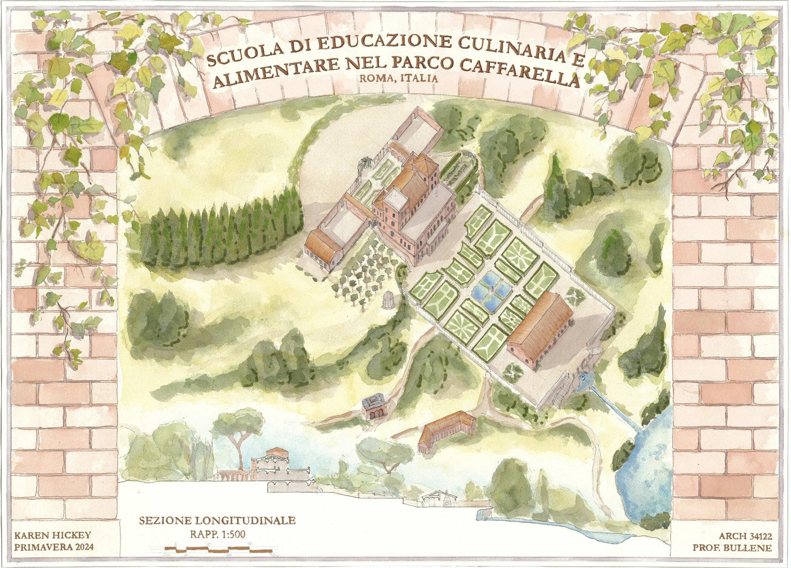 Inspired by the Roman Villas of antiquity, the School of Culinary Arts is designed as a getaway from the busy life in the Roman center. Sitting atop the main hill of Parco Caffarella, the Culinary School looks out across the beautiful rural landscape to tie together the beauty of architecture with the power of nature.
