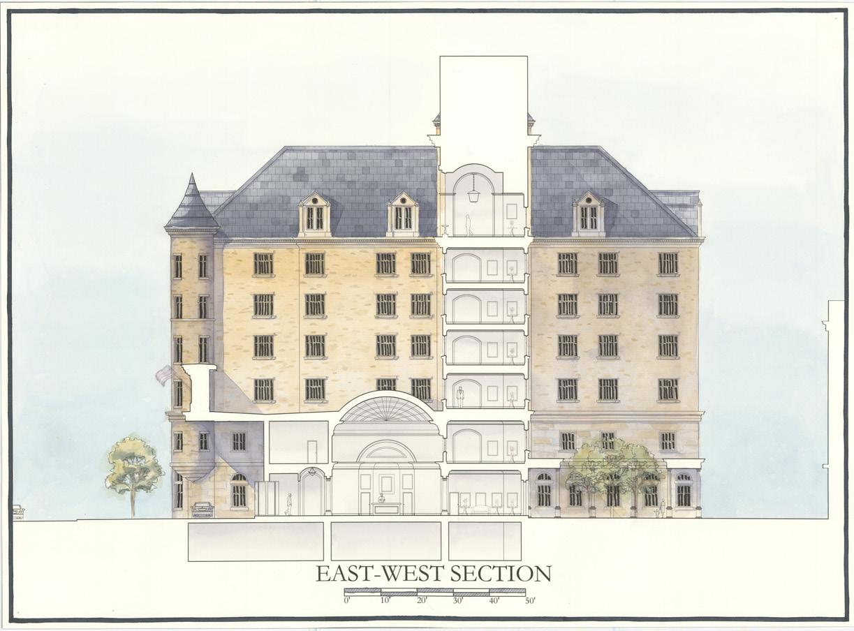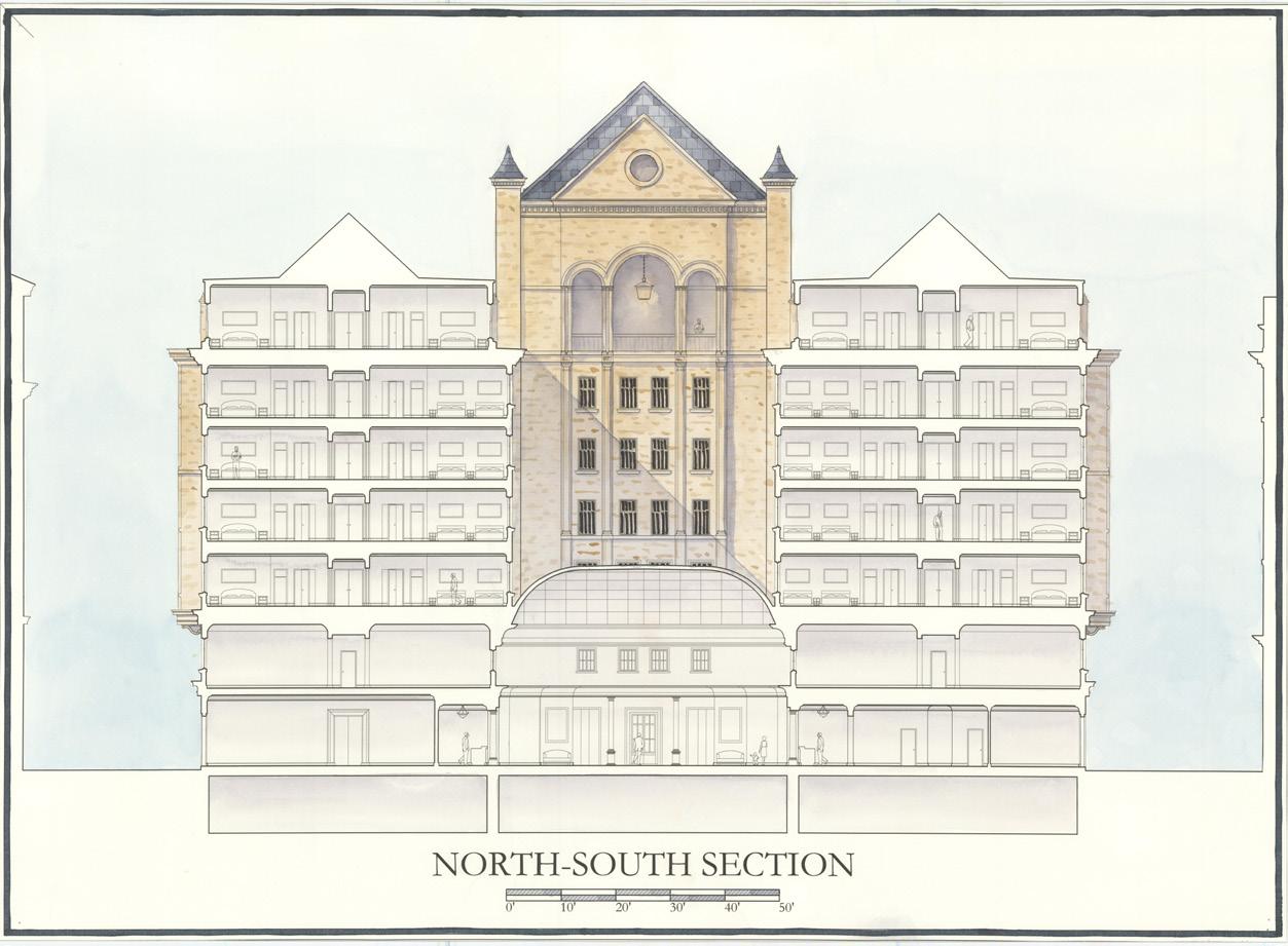 Designed in the Richardsonian Romanesque style, the proposed Union Hotel is designed as a boutique hotel to bring new life to North Capitol St. in Washington, D.C. The hotel includes a bar, restaurant, and café space that will add needed commercial activity to the area while welcoming children, families, and professionals to the charming castle-like hotel. In addition, the hotel showcases a large lobby with immense natural light and a garden courtyard to connect all visitors to nature during their stay in the city.