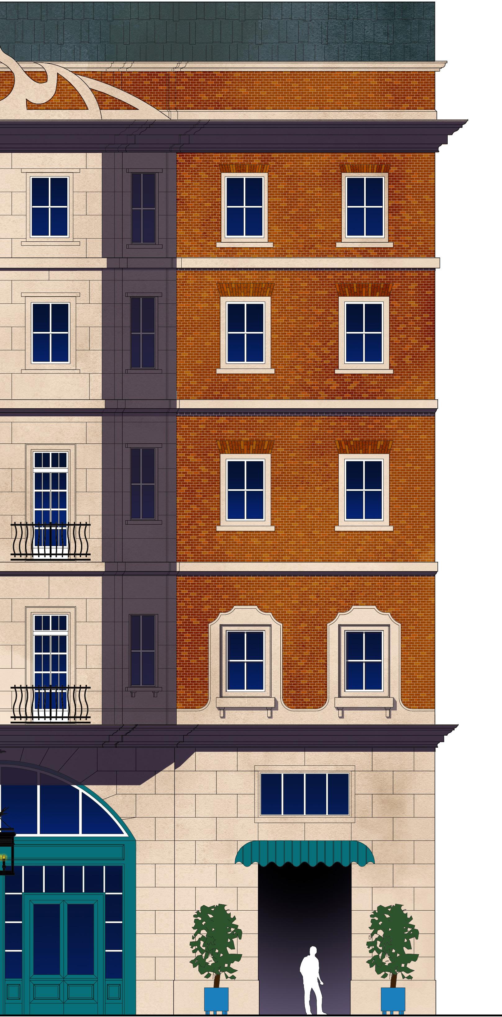 The proposed apartment building for the city center of Philadelphia takes on a simple, yet prominent character for Market Street.