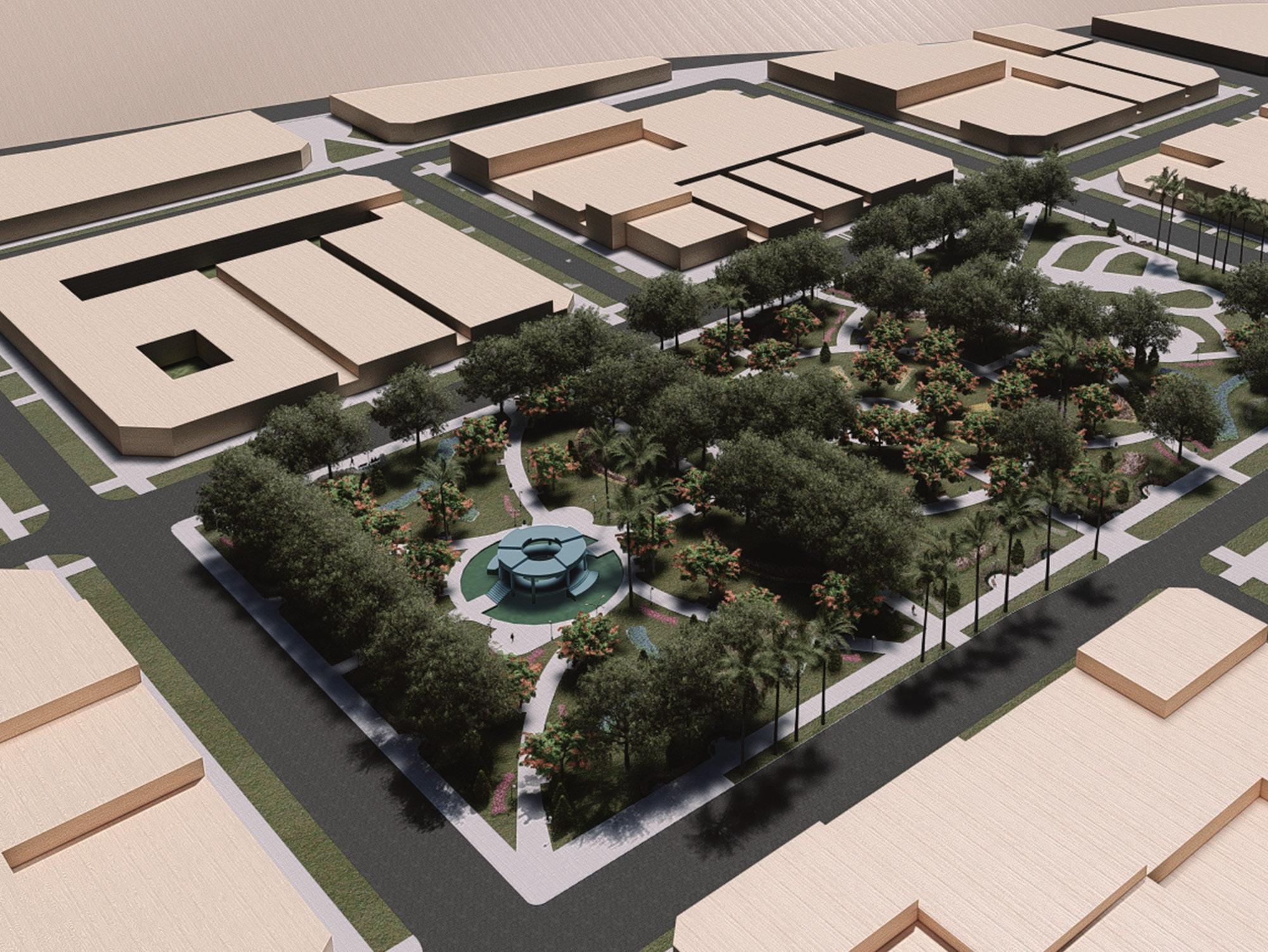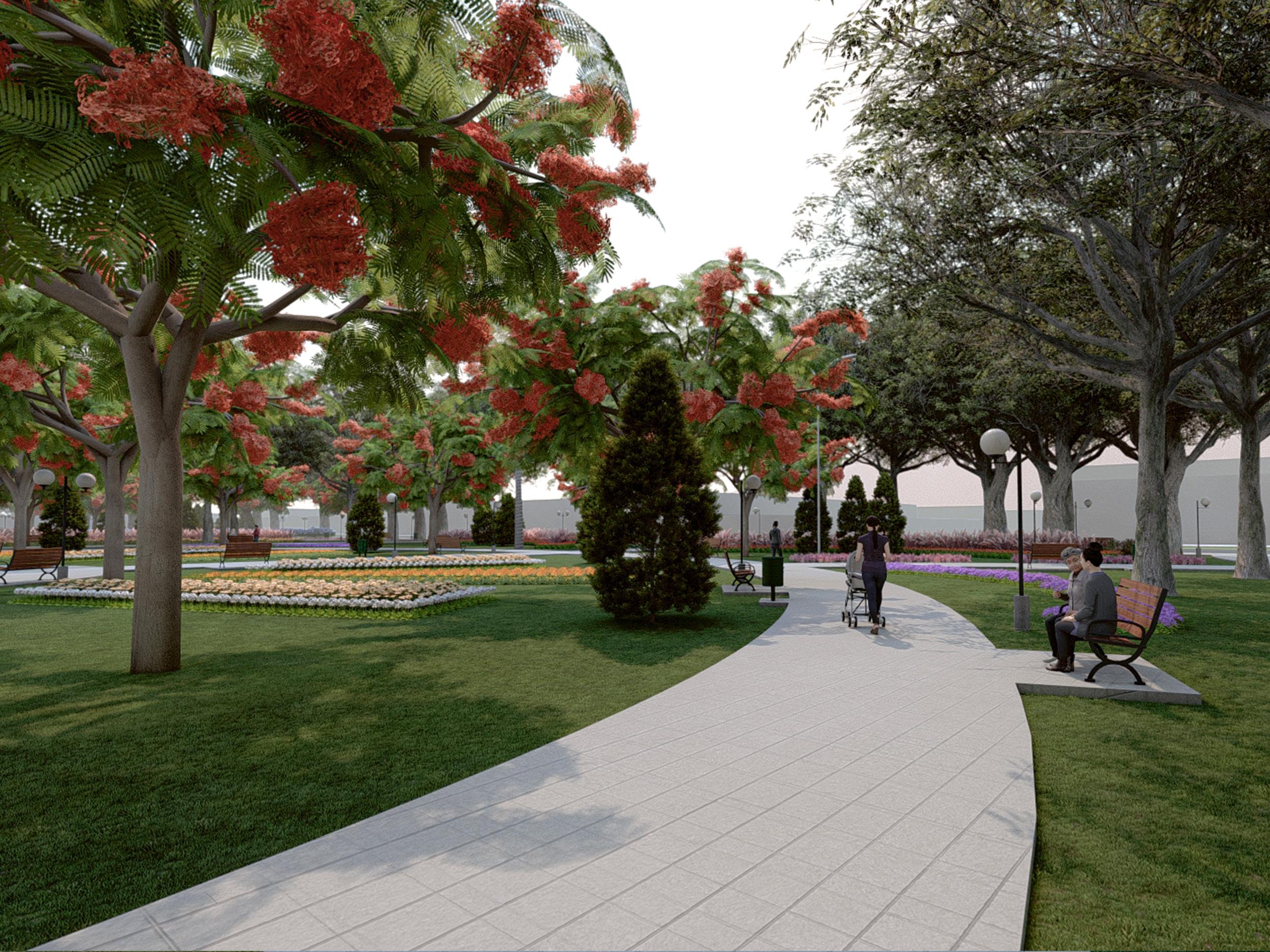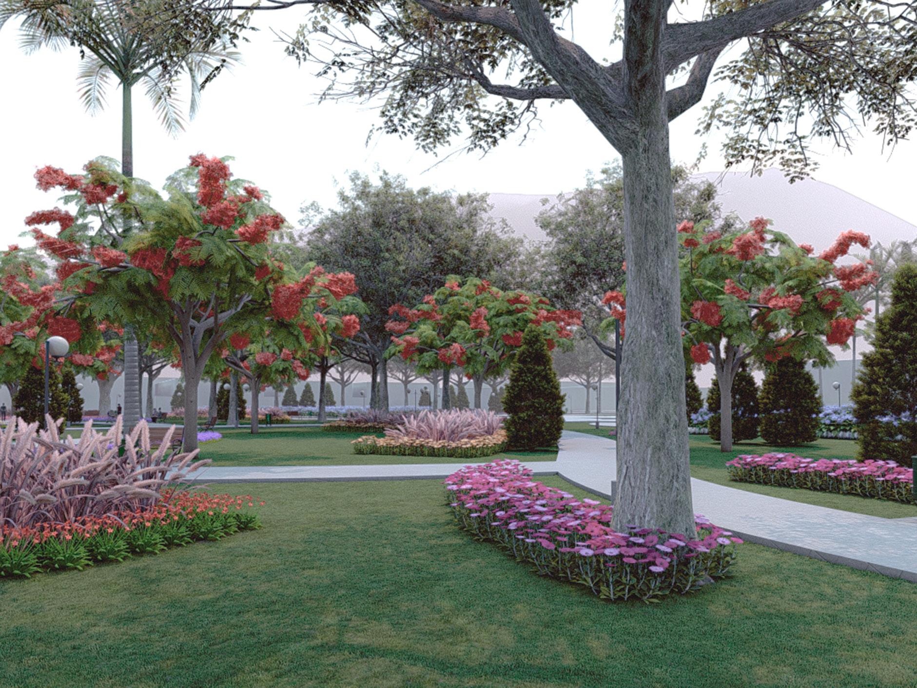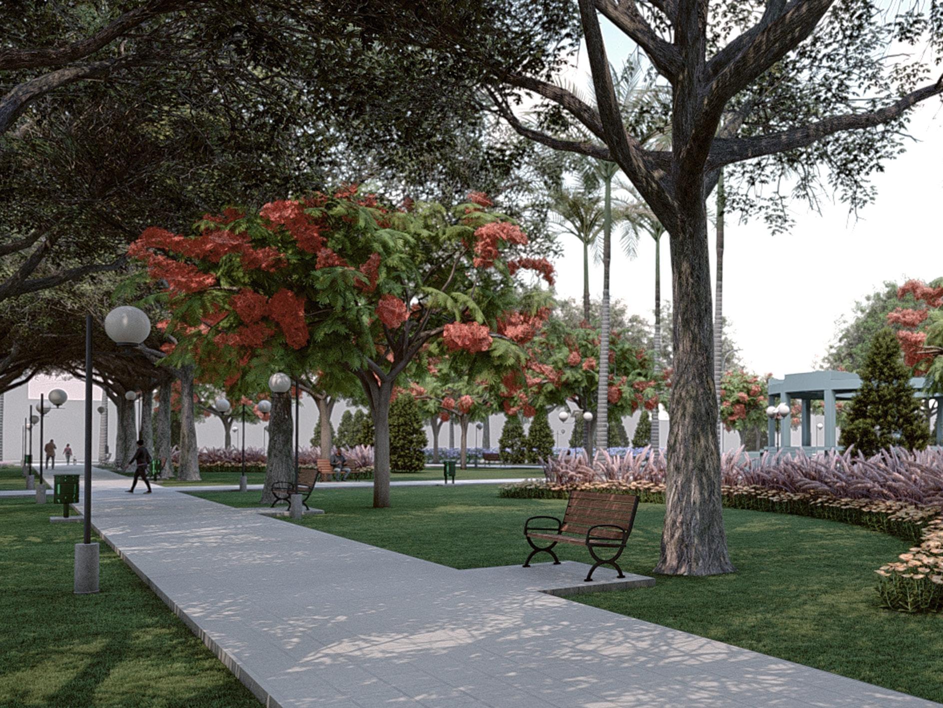 Proyecto de modelado y renderizado del Parque Central de Chosica Emilio del Solar. El proyecto integra la propuesta de paisajismo con el contexto de la ciudad.