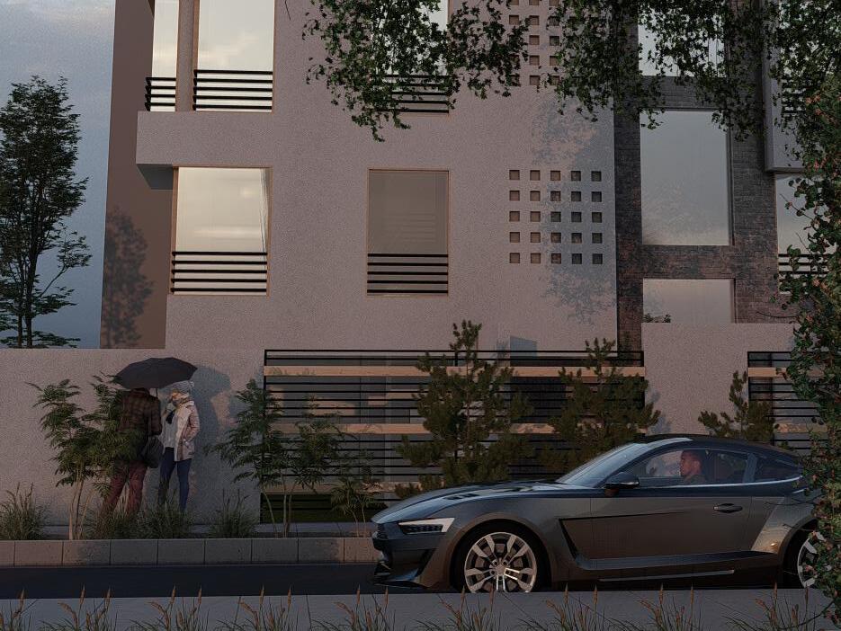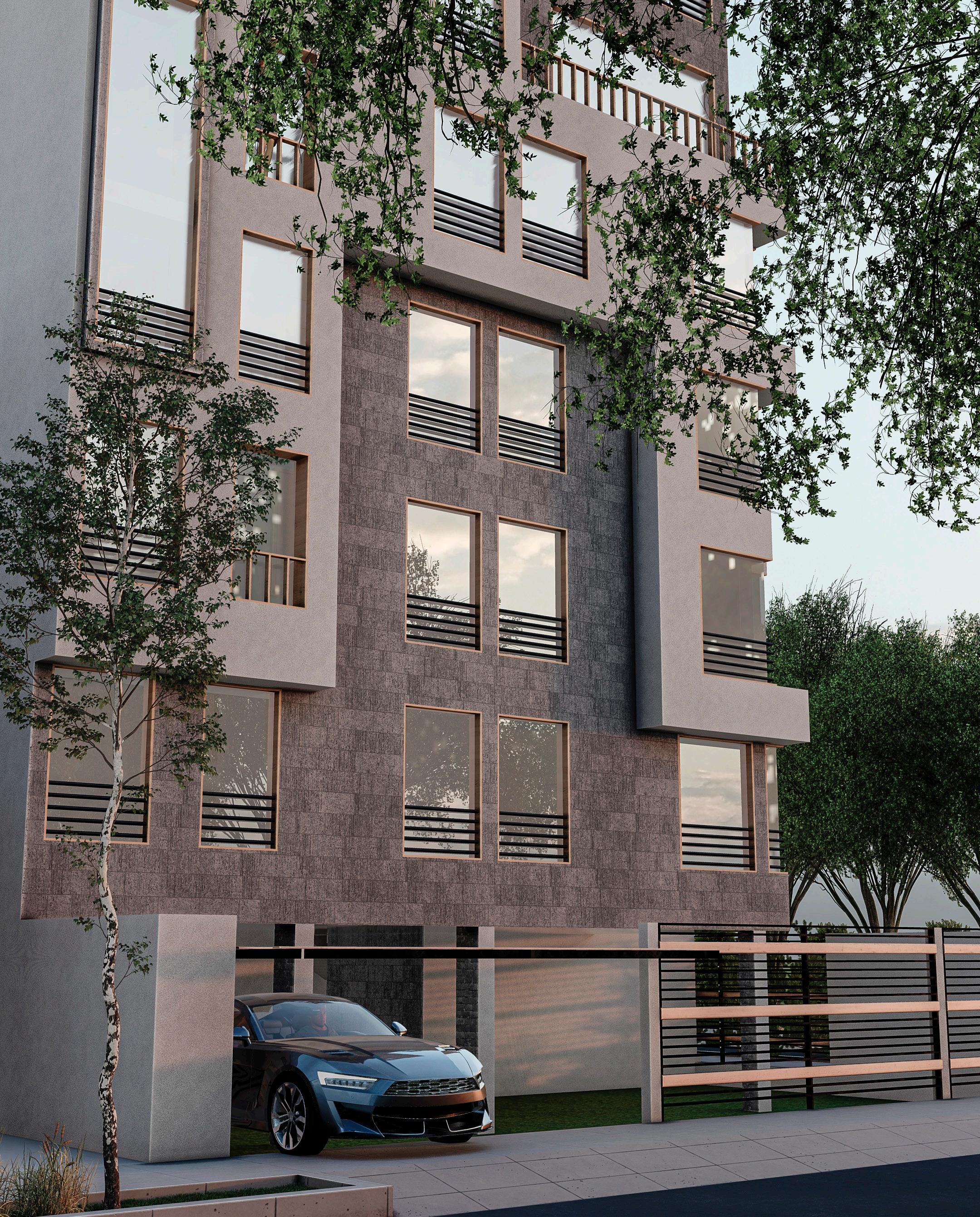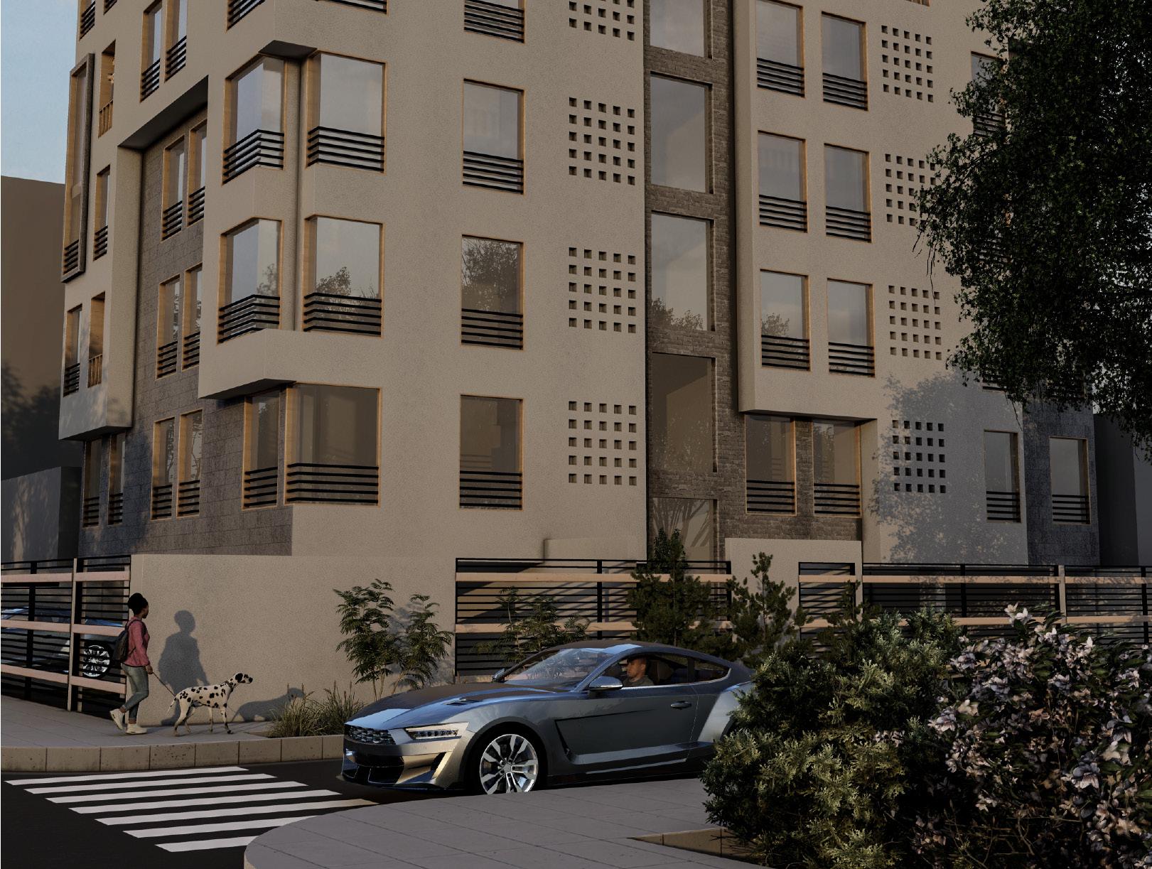 Renderización del edificio multifamiliar con el fin de observar su relación con el contexto y evaluando los acabados antes de su ejecución.
