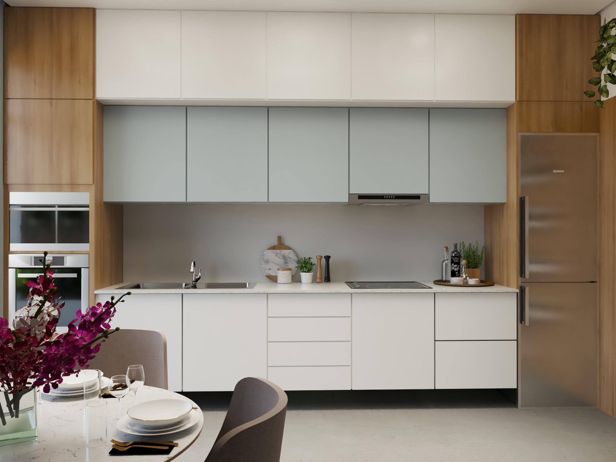 Proyecto desarrollado de manera independiente para una pareja que buscaba conectar el espacio de la cocina con la terraza, con un pequeño comedor de diario.