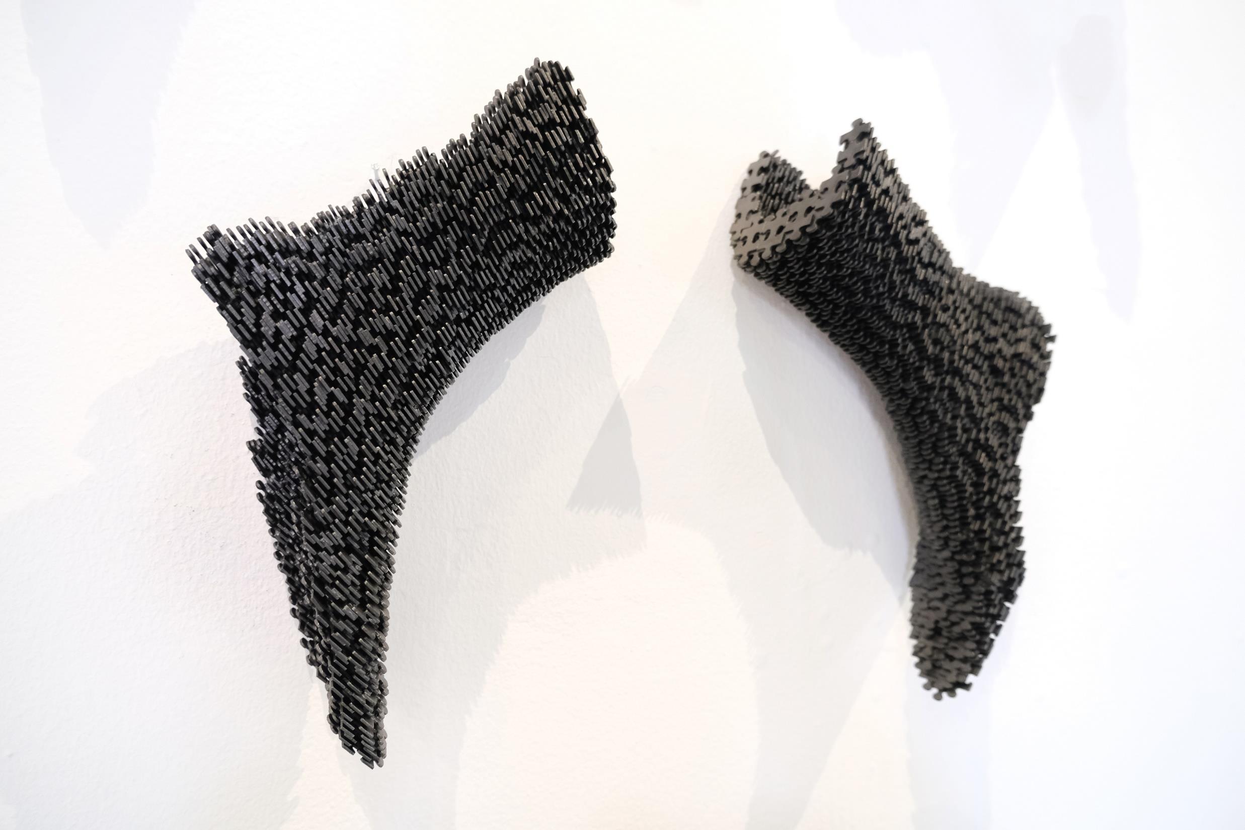 Granalla doble Rompecabezas de cartón esmaltados y pátina de grafíto. 30x30x25cm. 2020
