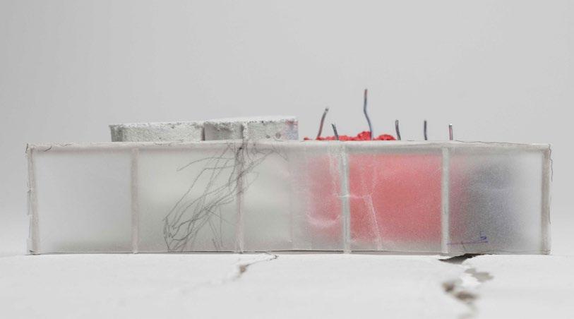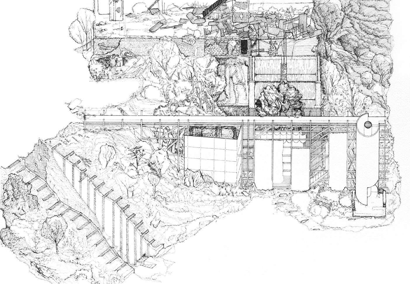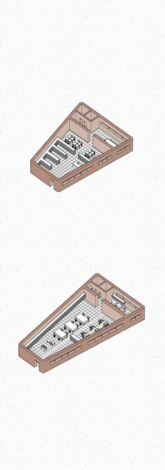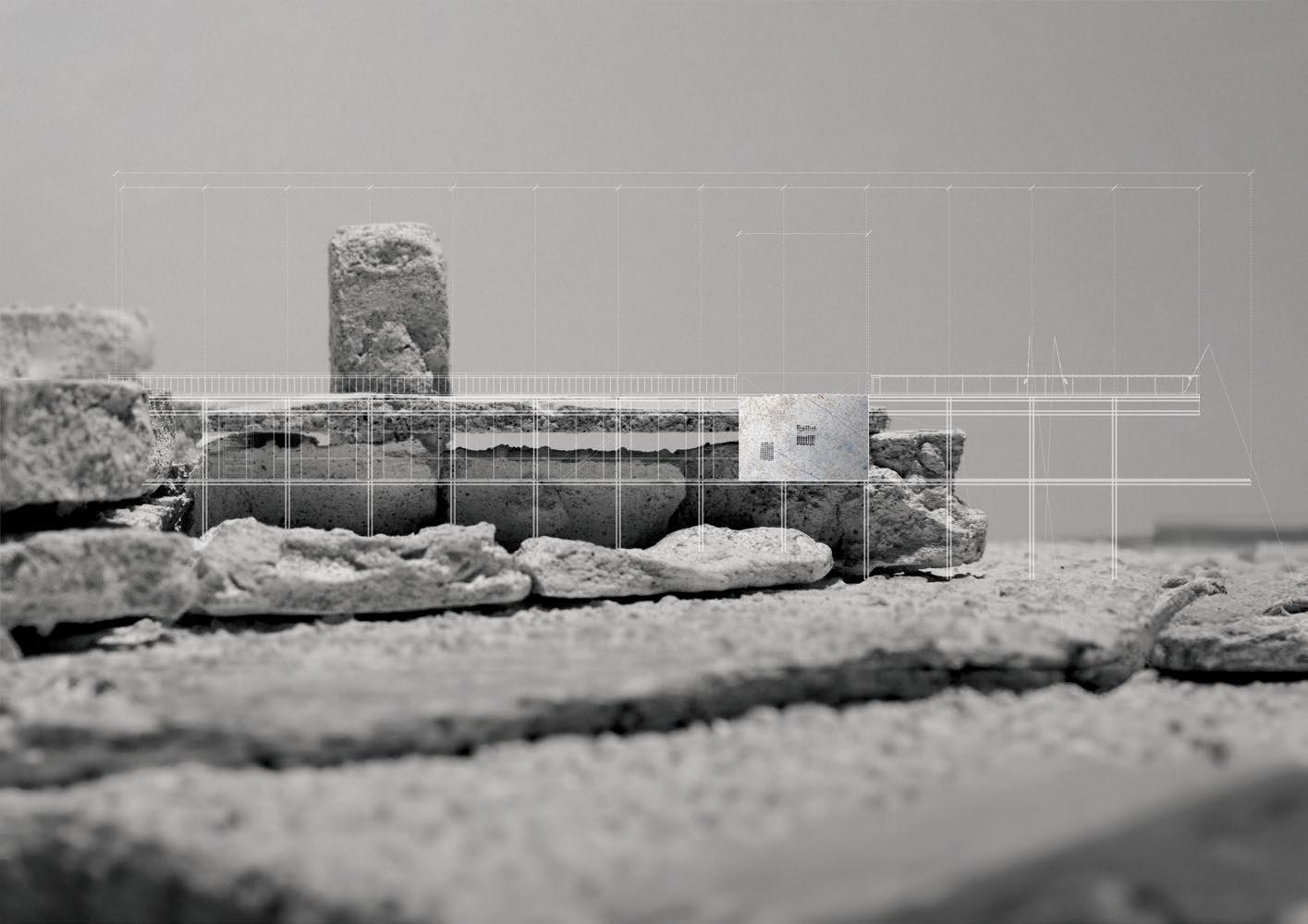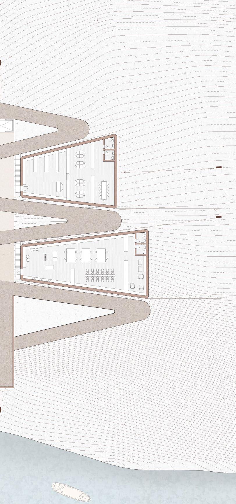 This project is conceptualized as four interventions that stitch together the three plateaus found on an abandonded iron mine in Rio Marina. The CATWALK envelopes existing RUINS from the mining infrastructure to serve as a new facade of this INDUSTRIAL PARK, made up of wooden scaffolding and textile drapes. This provides a base infrastructure for the public to decide how to use this area of the park and what needs to be added/removed to adapt to their needs. The new DOCK sits atop and askew the previous dock to accommodate for the informal fishing activities that occur on this abandoned site. These two interventions serve as the stereotomic interventions, mimicking the existing mining structures while also looking at toward the water. The two stereotomic interventions are the AMPHITHEATRE and the HIDING HOLES. The amphitheatre carves away on the steep wall of the site, forcing viewers to look and descend into the land, which is part of the island’s long history of MINING. On the other hand, the hiding holes provide shade for beach goers, while forcing them to look straight into the ocean, as FISHING and water are also part of the island’s history.