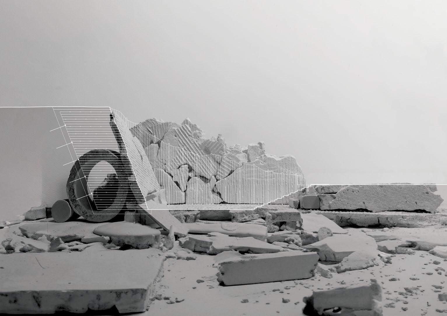 This project investigates the ways in which the a building can disperse to create moments of architecture that accommodate LANDSCAPES IN FLUCTUATION. The program is a CENTER FOR PRODUCTION of ceramics where the source material is extracted from the site. It will also serve as a new CENTER OF COMMONS to integrate the Catskill community and its tourists with the local artisans working in this studio.