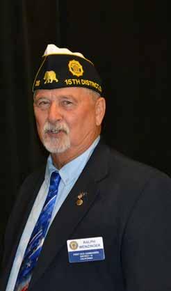 I am Ralph Wenzinger, Commander of the 15th District for 2022-2023. My eligibility for membership in the American Legion comes from my service in the world’s greatest air power, the United States Air Force, during the war in Viet Nam. I am a member of Bakersfield Post 26 where I cur rently serve as 2nd Vice Commander. I previously have been Post 26’s Sergeant-at-Arms and 1st Vice Commander. I am a member of Chapter 26 of the American Legion Riders and the Vice Director of the American Legion Riders for the Department of California.