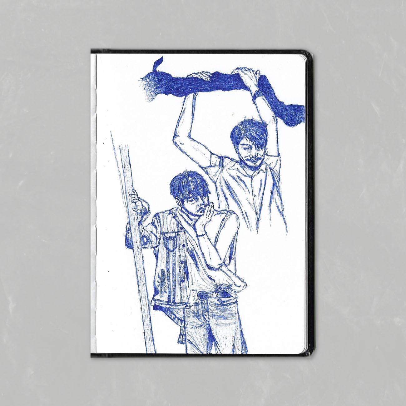 From above is where i create colored digital drawing by using procreate. it was challenging to make their clothes in detail. from bellow is where i create manual drawing by using blue ink pen.