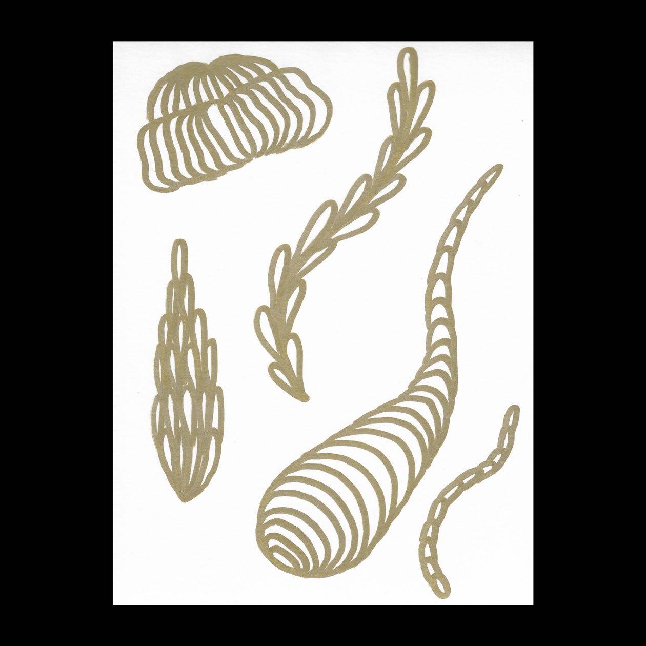 I’m also very interested in drawing any kind of shapes that can make some organic lines Especially on these six draws in total that I made by using two markers, gold and black. this kind of shapes i usually draw and i do really enjoy it.