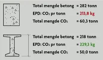 Ett av FN sine klima mål er å redusere Co2 utslipp, om man bruker bærekraftige materialer som har lang levetid men har lavere Co2 utslipp med smarte løsninger, så er man godt på vei, her er ett eksempel på en bjelke som er like sterk, men konstruert på 2 forskjellige måter for å spare på bruken av betong og minske Co2 utslippet.