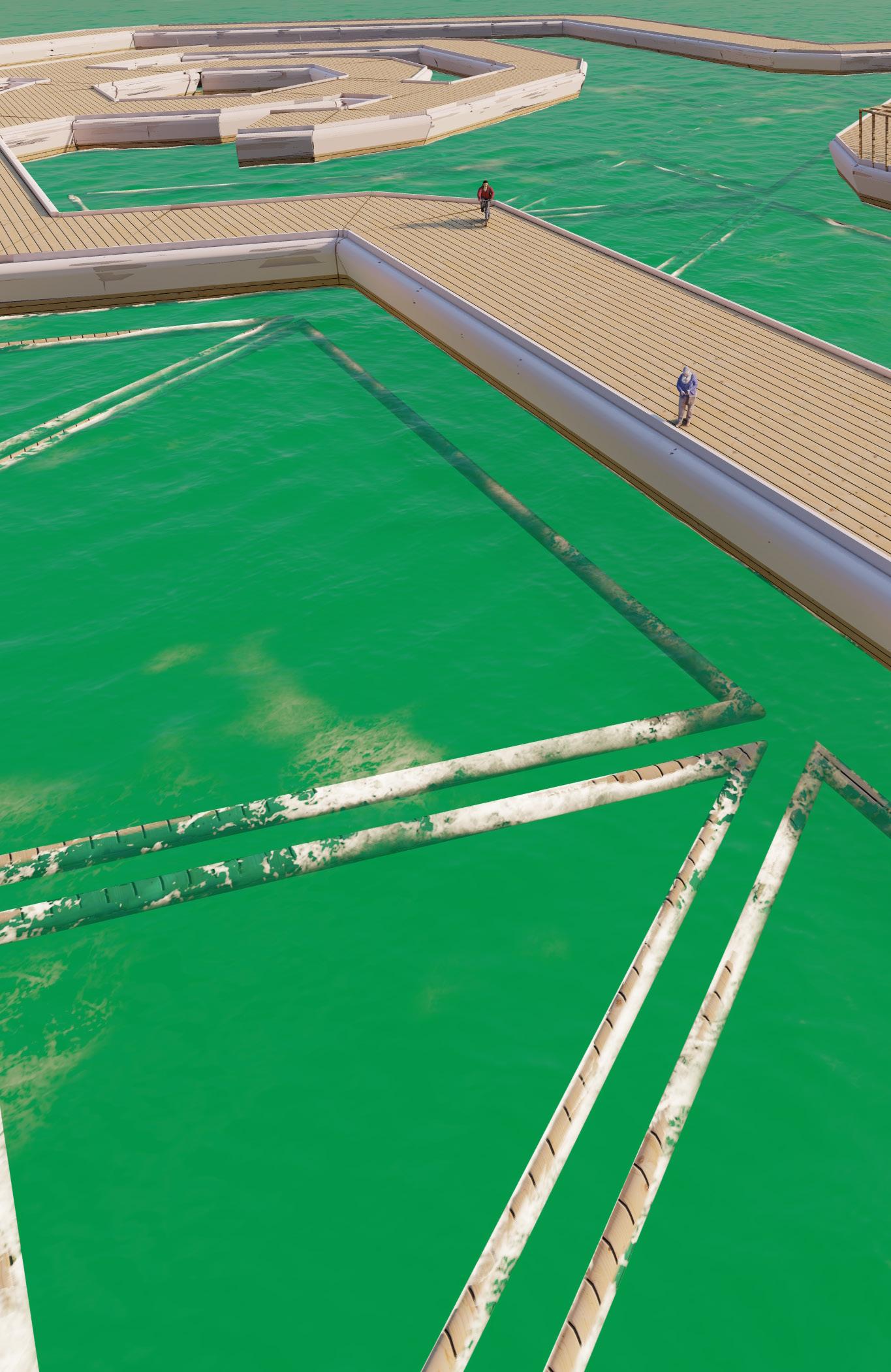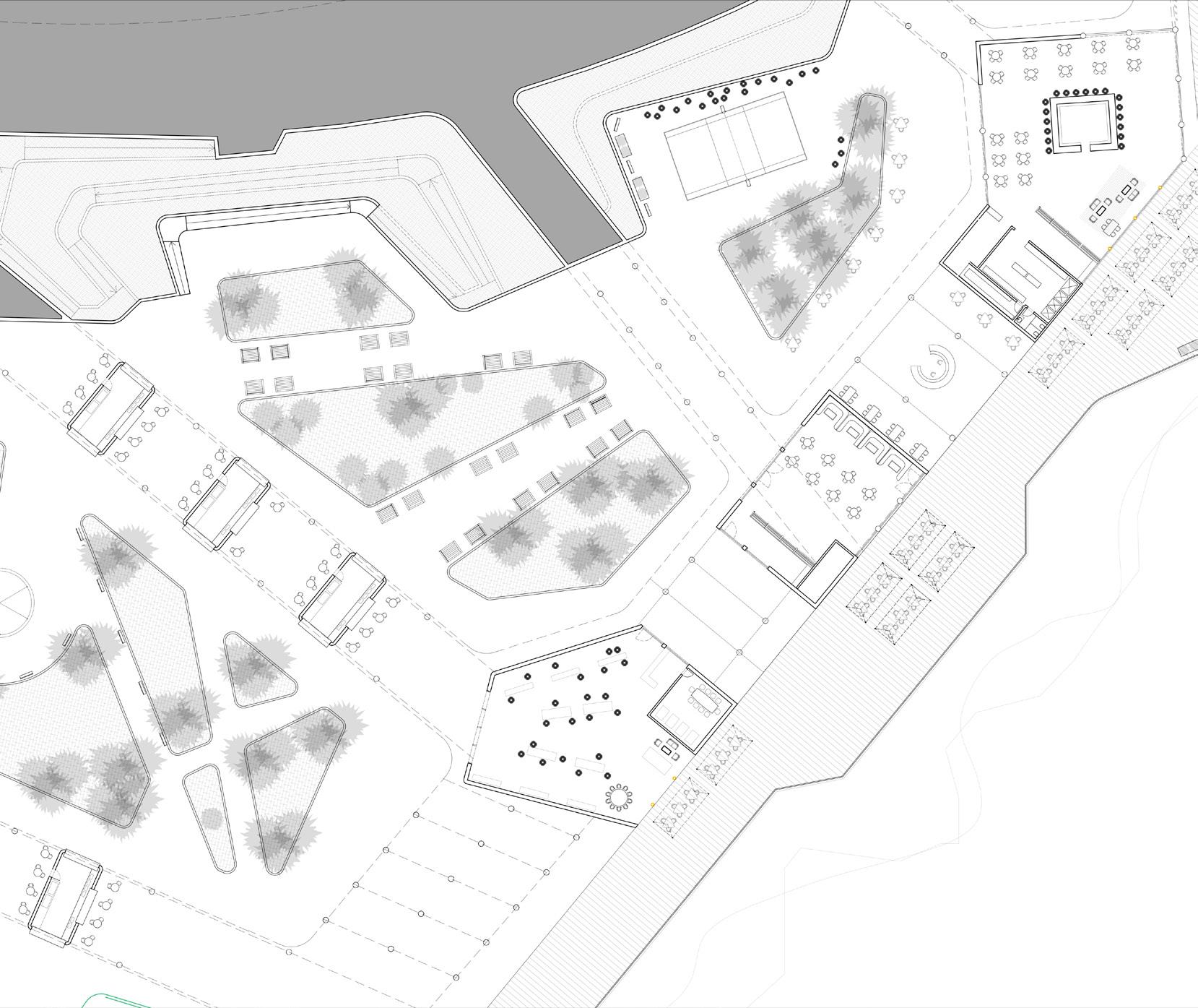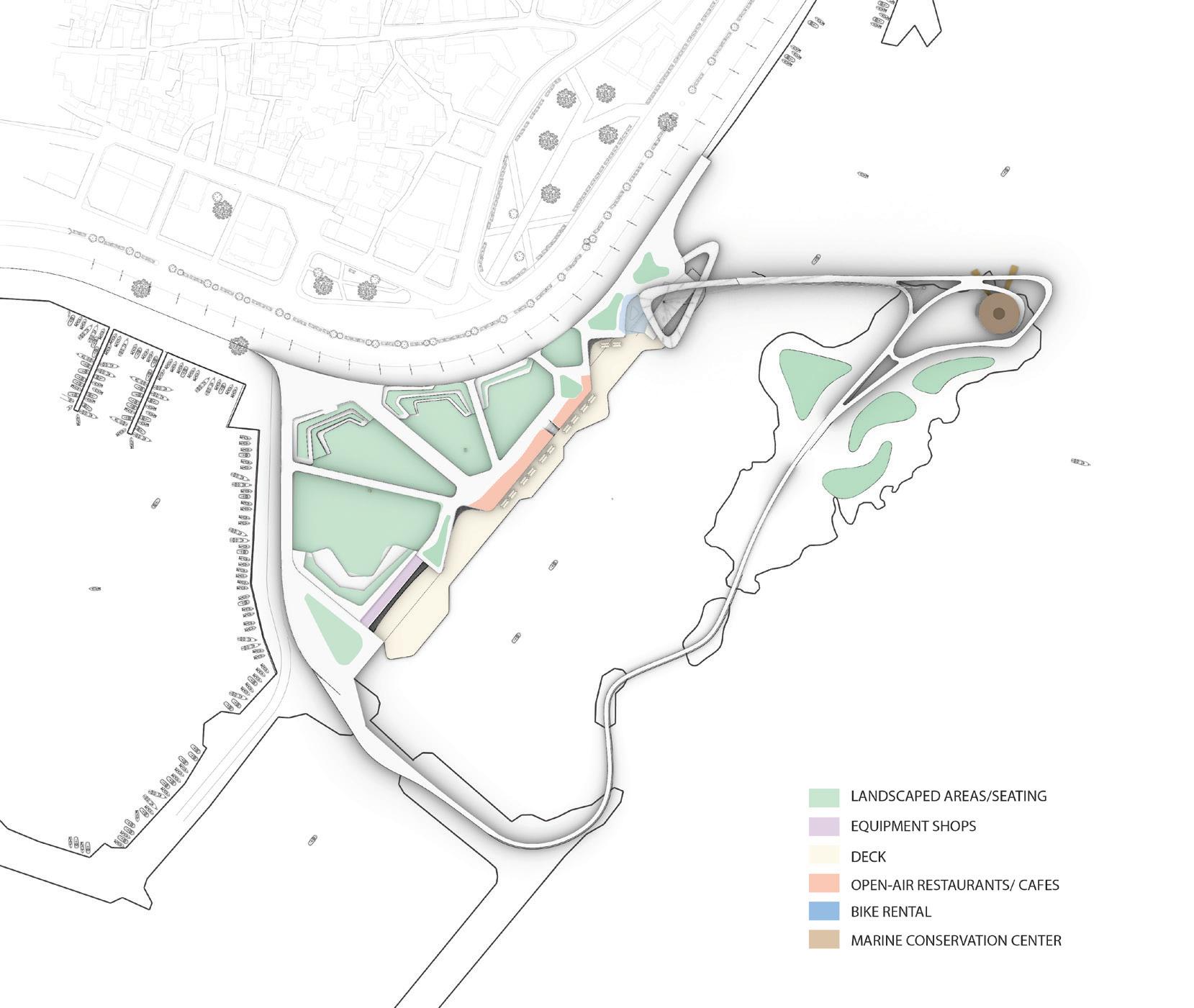This project reimagines Tripoli’s Mina Corniche by extending its urban fabric seaward and reconnecting it to a nearby island. It follows a dual approach: a dynamic public waterfront that enhances the corniche with new amenities and an ecological preservation resort on the island. The waterfront transforms into an active social hub with layered public spaces, while the island remains largely untouched, hosting only a minimal conservation center.