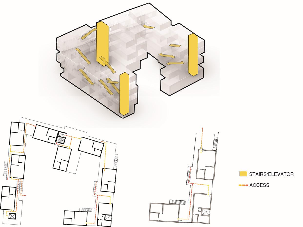 The end product is a mixed-use building consistng of shifting units accompanying different users, that allow for social friction (as was prominent in Hay Al Tanak) while still maintaining a sense of privacy and comfort.