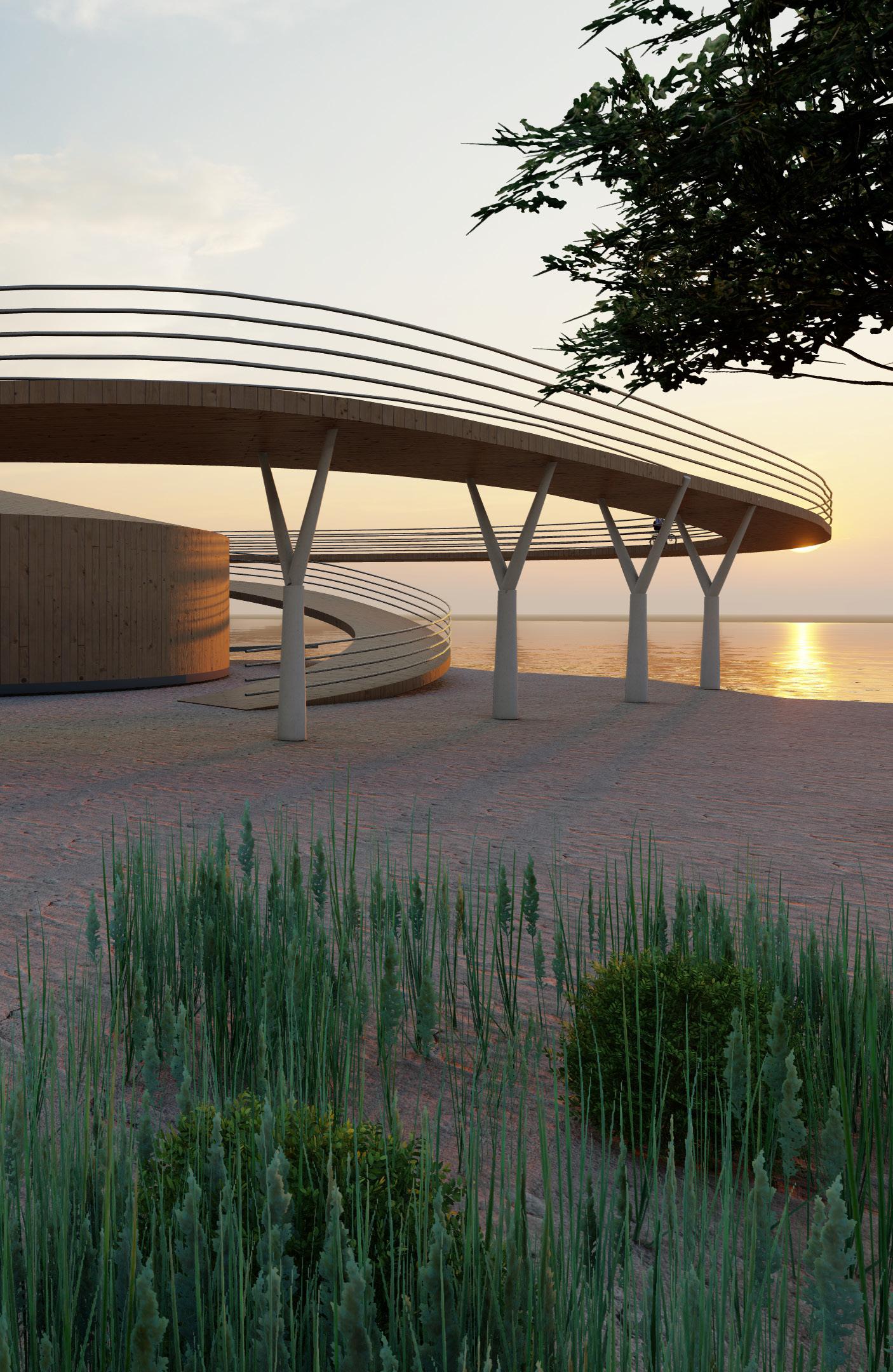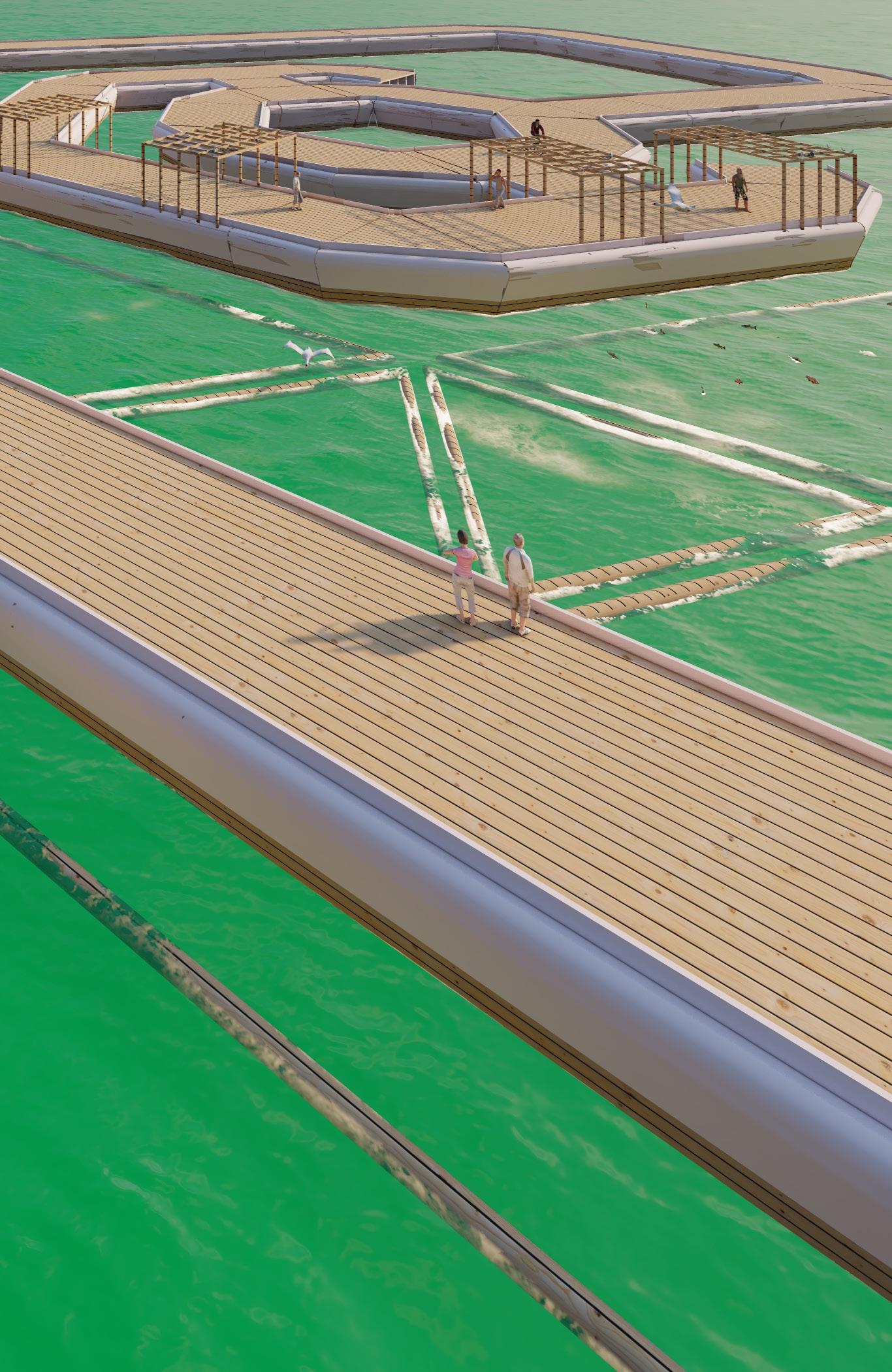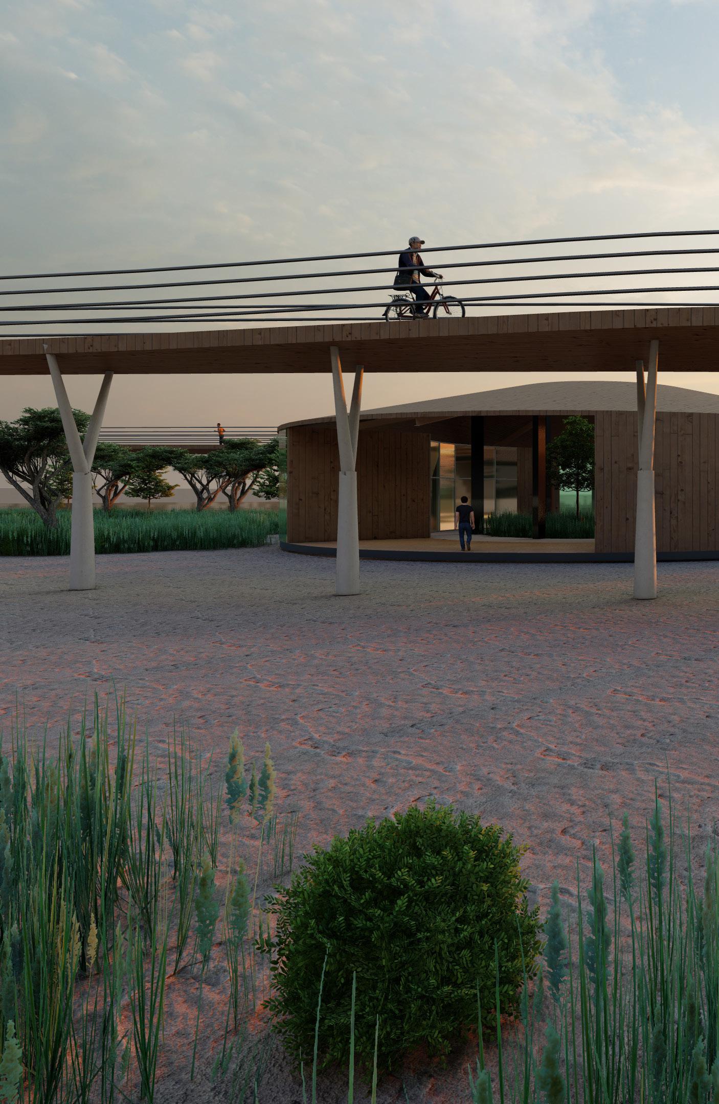A lightweight pedestrian and cycling bridge seamlessly links these contrasting environments, strengthening the connection between urban life and nature while redefining coastal resilience.