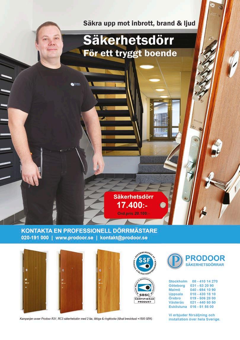 En tung tid för många bostadsrättsföreningar. 9 CE-märkt ytterdörr numera ett lagkrav 23 Trimma värmeutrustningen – sänk energikostnaden 35 Grönt elbolag ger bästa tipsen på sparåtgärder 39 Styrelseskolan – Nya ändringar i bostadsrättslagen 48