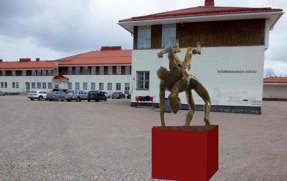 Se on juuri sitä oikeata painia. Mielestäni Sodankylän kulttuuritaloksi korotettu Kitisenrannan koulu tarvitsee imagolleen myös lisää kulttuuria ja taidetta. Olen parissa kunnan järjestämässä kulttuurikahvilassa esittänyt, että tällainen arvonkohotus voidaan tehdä sijoittamalla pihalle painia edustava taideteos. Ja ehdotukseni on ollut, että valittaisiin ”Aaten” teoksista sopivin ja omistajan sekä taiteilijan omaisten kanssa sovittaisiin, että siitä tehdään noin parimetrinen pronssinen toisinto eli kopio, joka sijoitettaisiin noin metrisen kivijalustan päälle. Paikaksi mielestäni sopisi entinen ”Rehtorin rusinapuun” paikka