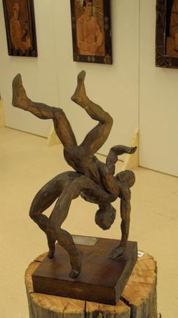 Tässä on kolme ”Aaten” tekemää painija pienoispatsasta kuvattu Erkki Alajärven muistonäyttelystä, joka järjestettiin 11.6.–29.7. 2018 Sodankylässä. Näistä kaikista näkee todellista painimista.