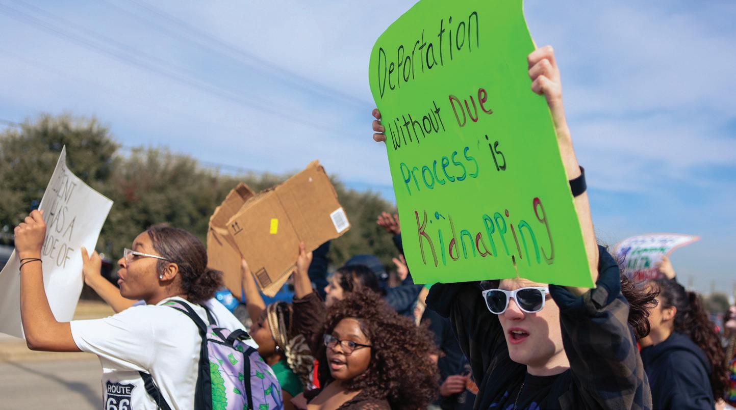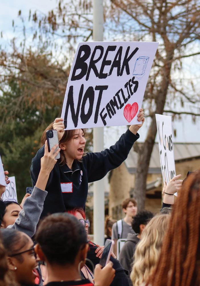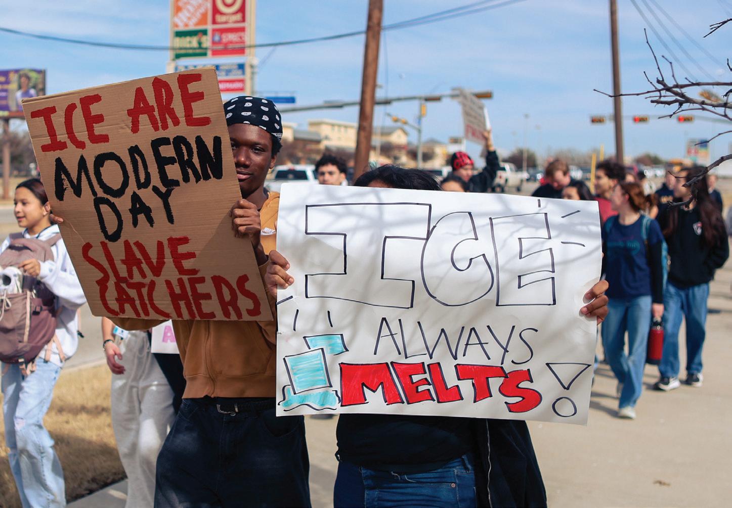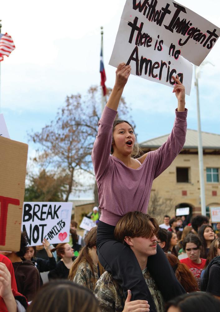 Senior Atlas Flores participates in studentled walkout. “No one is illegal on stolen land,” Flores said. “Our Governor needs to see that we won’t just stay in school.” Students walked to the Pflugerville courthouse. Photo by Ryleigh Mackey