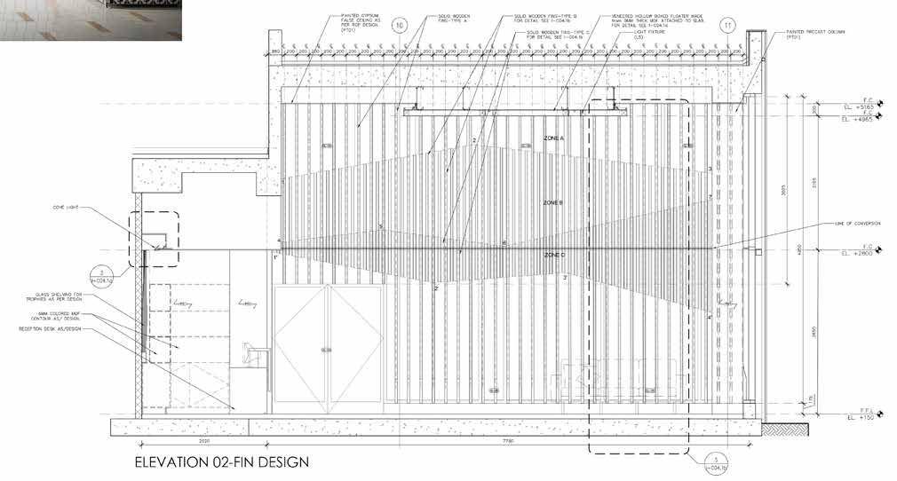 Responsibilities : Designing reflected ceiling plans and coordinating the design with MEP. Other Contributions : Designing interior elevation, furniture and flooring patterns of selected spaces, coordinating the visualization of renders.