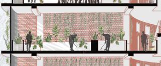 The idea of a ruin is achieved by inserting a new structure within the existing warehouse and exposing the trusses and brick facade; thus creating green pockets that set diverse environments driving interactions at various levels; therefore creating a community within its ruins.