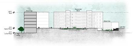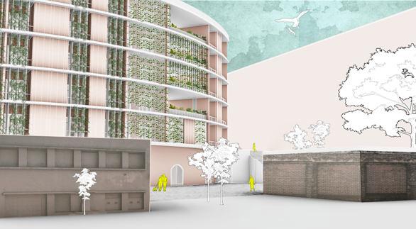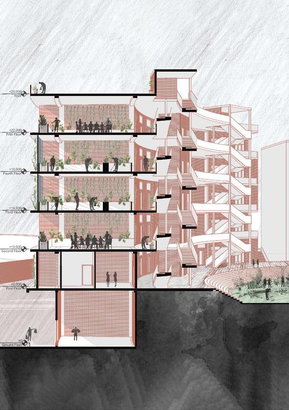 The project addresses the problem of social isolation occurring in apartments of cities by using gardening as a means of interaction and gathering. A Green Vein is introduced vertically along the façade through vines and horizontally through gardening spaces that act as zone for social interaction by intermingling spaces for dining and playing. A mixed-use development is proposed in response to the historical and public nature of the site. A range of apartment types are integrated to allow greater flexibility to choose from, welcoming a range of residents be it a family, student, or young professionals.