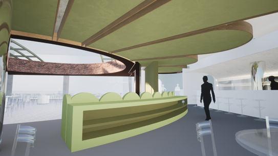 The restaurant’s concept focuses on indoor and outdoor dining spaces adaptable for any time of day or year, featuring a retractable shading device informed by sun studies called the ‘Oculus’ or eye . To enhance the seasonal ambiance, trees are rotated to reflect each season, creating a dynamic outdoor dining experience that changes with the weather. Seasonal canvases were designed during the project’s conceptual stage to further embody this concept.