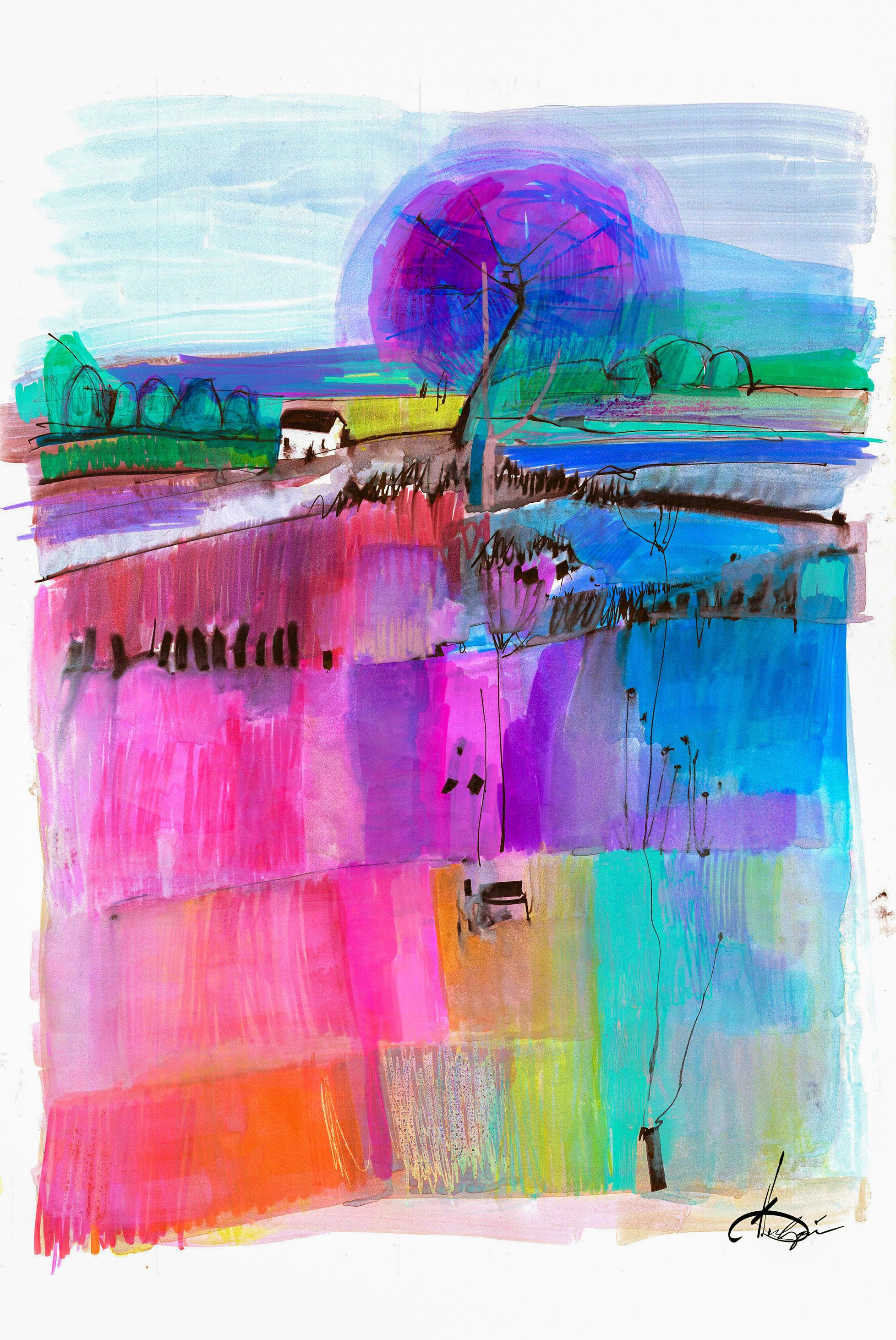 In the pain�ng on the le�, I used a photograph sent to me by a friend as a reference. I was drawn to the slope, the �me of day, the ligh�ng, and the composi�on in the photograph. I liked the various layers and the distant mountains in the scene. However, I made a deliberate choice to alter the color pale�e. My inspira�on for the color scheme came from the work of Paul Balmer. I selected one of his pain�ngs and used it as a reference for the colors I used in my own artwork. The result represents a fusion of the captured moment in the photograph, my emo�onal state, and the color combina�ons from Paul's work.I find it fascina�ng how this artwork serves as a bridge between the talent of my friend photographer, a par�cular moment in the life of a city, one of my beloved ar�sts, and my emo�onal state of that moment. Isn’t it amazing?