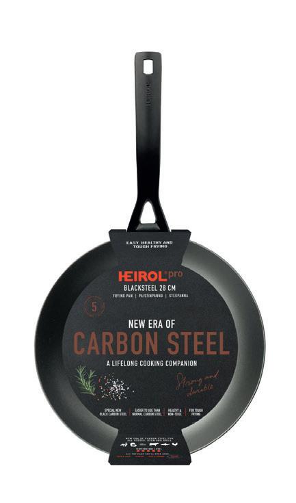 Blacksteel on ammattilaistason hiiliteräspannu, jossa yhdistyy harkittu muotoilu, luotettava laatu sekä ominaisuudet, joilla nostat ruoanlaiton tason myös kotikeittiössä. Erikoiskäsitellyllä mustalla hiiliteräksellä on erinomainen tarttumattom