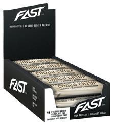 FAST patukassa on runsaasti proteiinia ilman grammaakaan lisättyä sokeria ja palmuöljyä. Patukan sisältämät proteiinit edistävät lihasmassan kasvua ja ylläpitämistä.