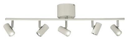 Aneta Lighting Gusto led kattokohdevalaisin GUSTO kattospotti , valkoiseksi maalattua metallia, kromiyksityiskohtia, 5x5W Suunnattavilla LED valolähteillä. Laadukkaat Integroidut valonlähteet miellyttävällä lämpimällä valkoisella valolla ja 5x400lm, kattokoukkukiinnitys