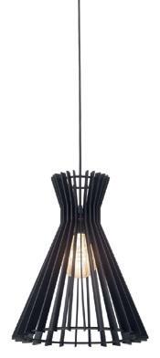 Puulamelleista koostuva riippuvalaisin, johon sopii erityisen hyvin koristeellinen valonlähde. Valaisimen korkeus on 41,4 cm ja halkaisija 34 cm. Koukkukiinnitys, sokeripalaliitäntä.