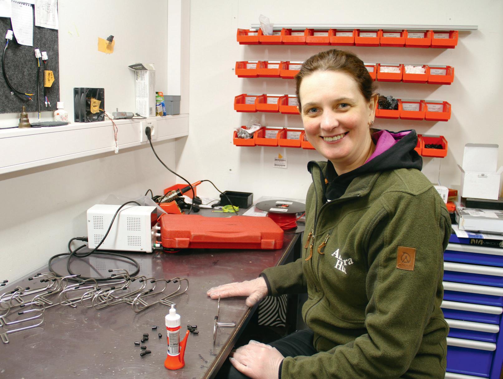 Oksana Trosteniuk viimeistelee AuroraHut®-igluveneiden sisustuksen. – Nyt kokoan ikkunaverhojen ripustimia, Ukrainasta kotoisin oleva, Ylivieskassa asuva Oksana kertoo.