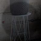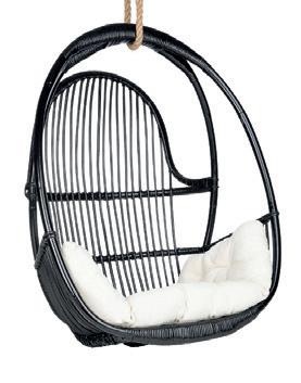 Koriosasta pienempään tilaan taittuva riipputuoli, esim. säilytystä ajatellen. Tuolin jalka on pulverimaalattua mustaa terästä, istuinkori alumiinia, jonka koriosa verhoiltu köysimäisellä punoksella. Pehmusteet sisältyvät hintaan. Painoraja 135 kg. Y, L, J, O, I, .com