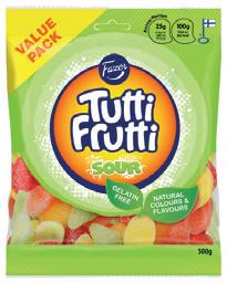 Hedelmäinen Tutti Frutti tuo iloa ja aurinkoa kaikille. Jättipussi! Y, L, J, O, I, .com Norm. 4,30