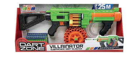 Dart Zone Villainator nuolipyssy Seikkailunhaluisten luottokaveri Villainator pelottaa vastustajasi! Vaahtomuoviammusaseeseen mahtuu 40 panosta kerrallaan ja ammut sillä nopeasti ja tehokkaasti jopa 25 metriin. Pyssyyn sopivat useimmat vaahtomuoviammukset. Ikäsuositus 8+ vuotta. Y, L, J, O, I, .com Norm. 34,90
