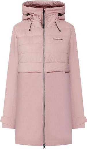 Hella on erinomainen ulkoilutakki aktiivisempaankin käyttöön. Sen hihat ja alaosa on hyvin joustavaa ja hengittävää materiaalia, ja yläosassa on kevyt toppaus lämmön varmistamiseksi. Kiinteä huppu.