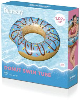 Herkullisen näköinen donitsin mallinen uimarengas kesän hauskiin vesileikkeihin! Uimarenkaan halkaisija 107 cm.