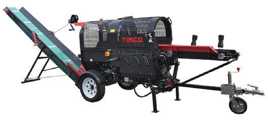 Timco 12T pilkekone automaattisella sahauksella ja hihnakuljettimella tekee kaikki neljä erillistä toimintoa yhdellä paketilla. Se kuljettaa, katkaisee, halkaisee ja siirtää klapit suoraan säkkiin tai varastoon.
