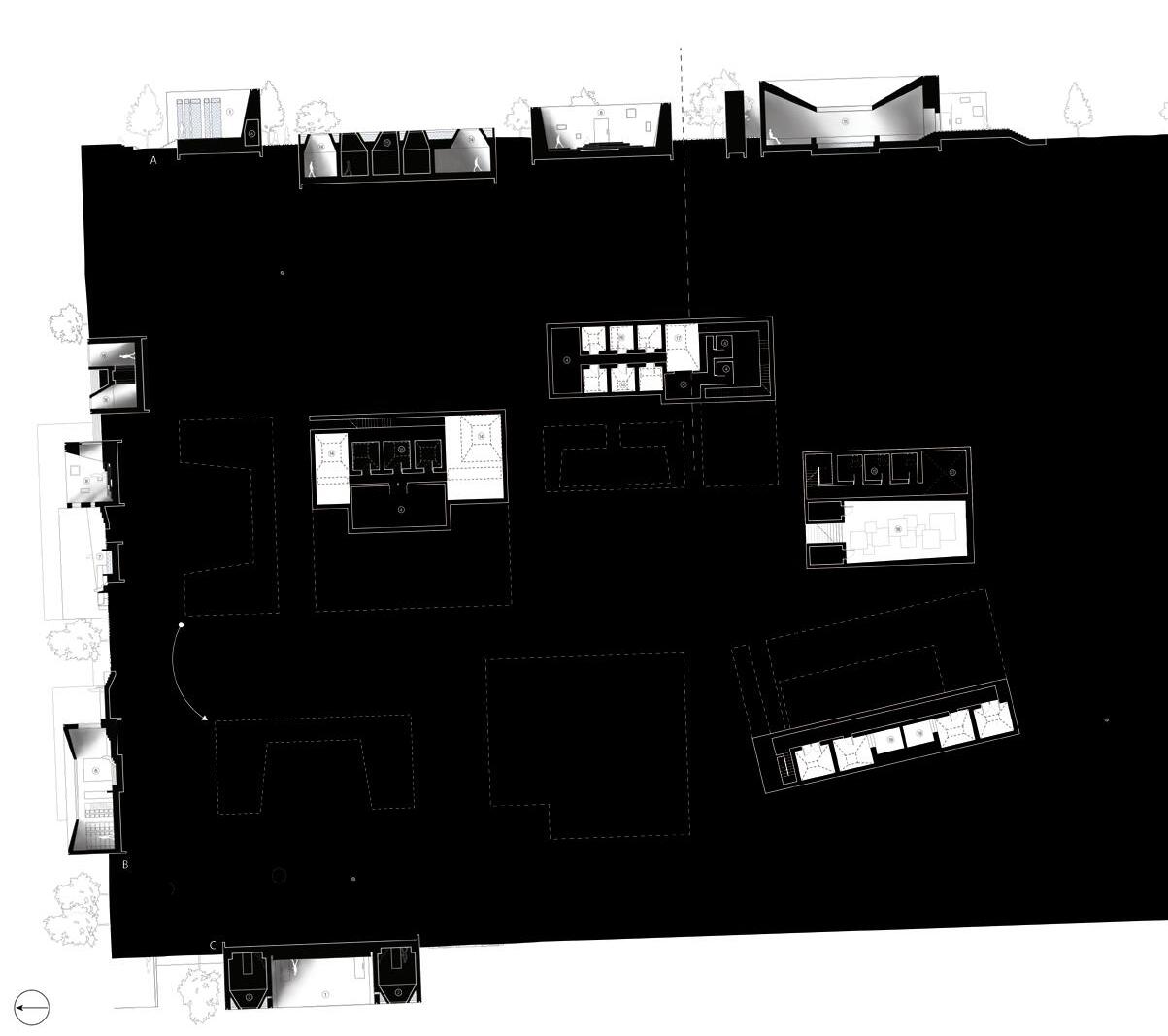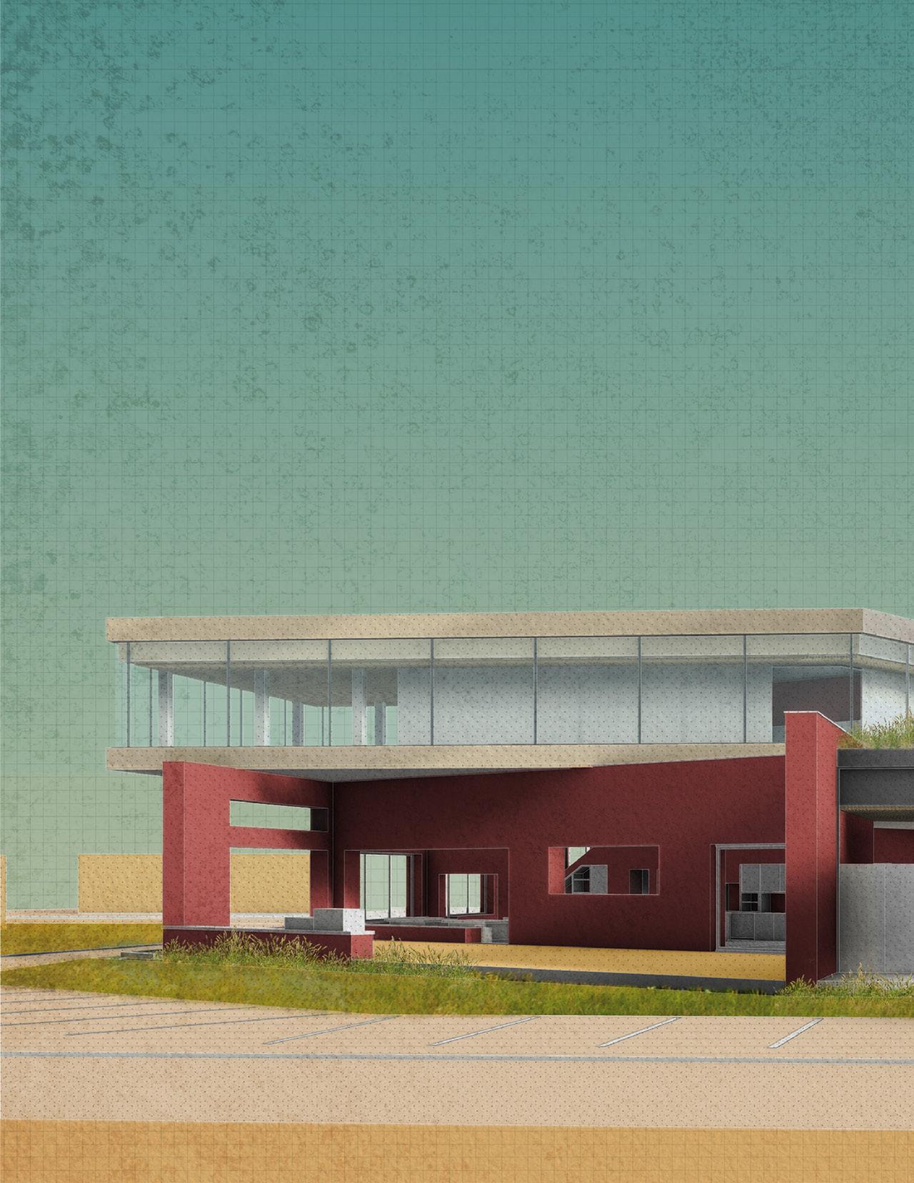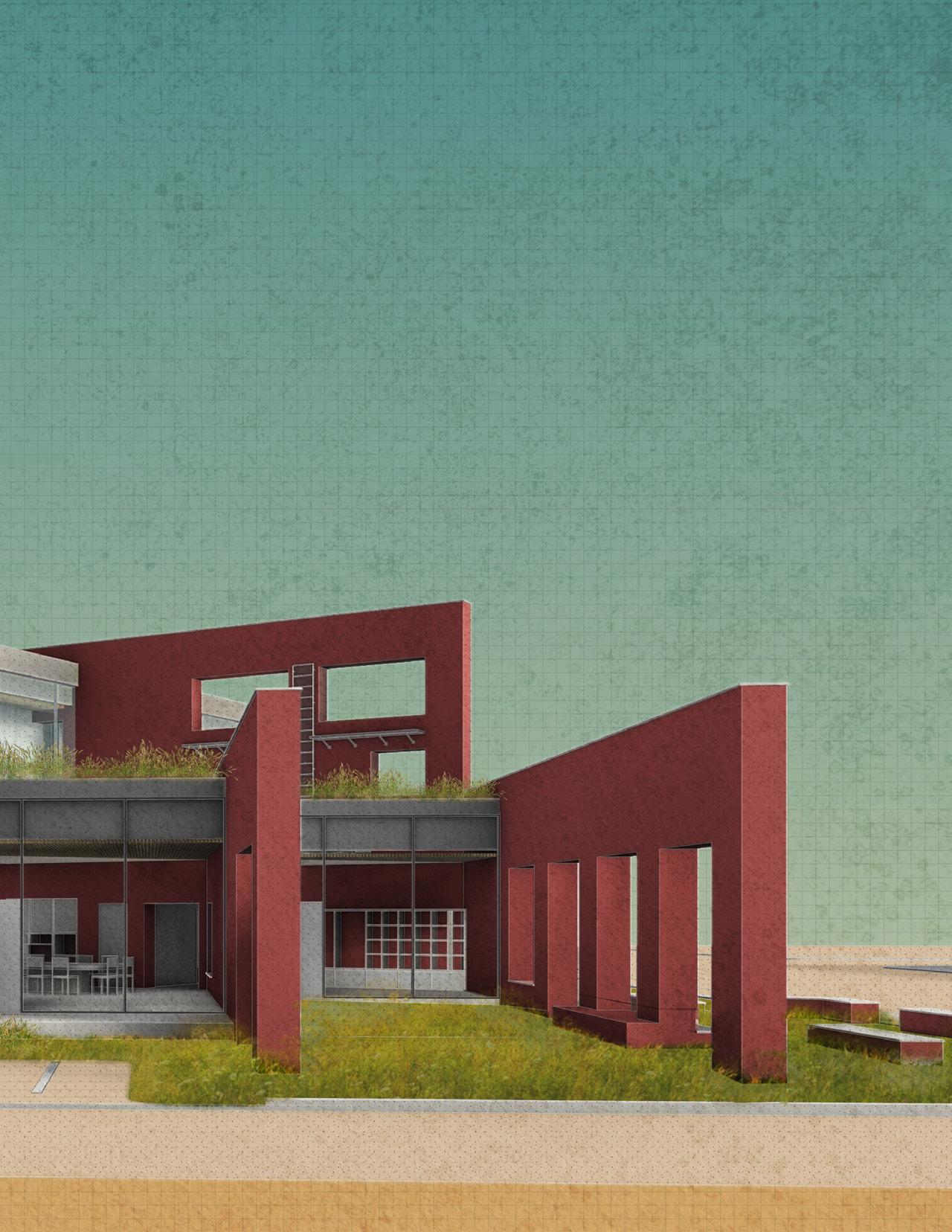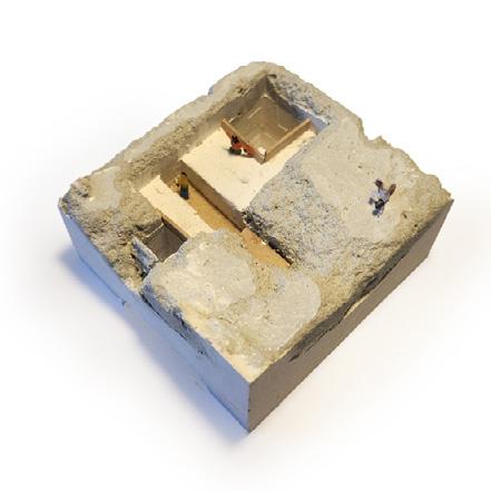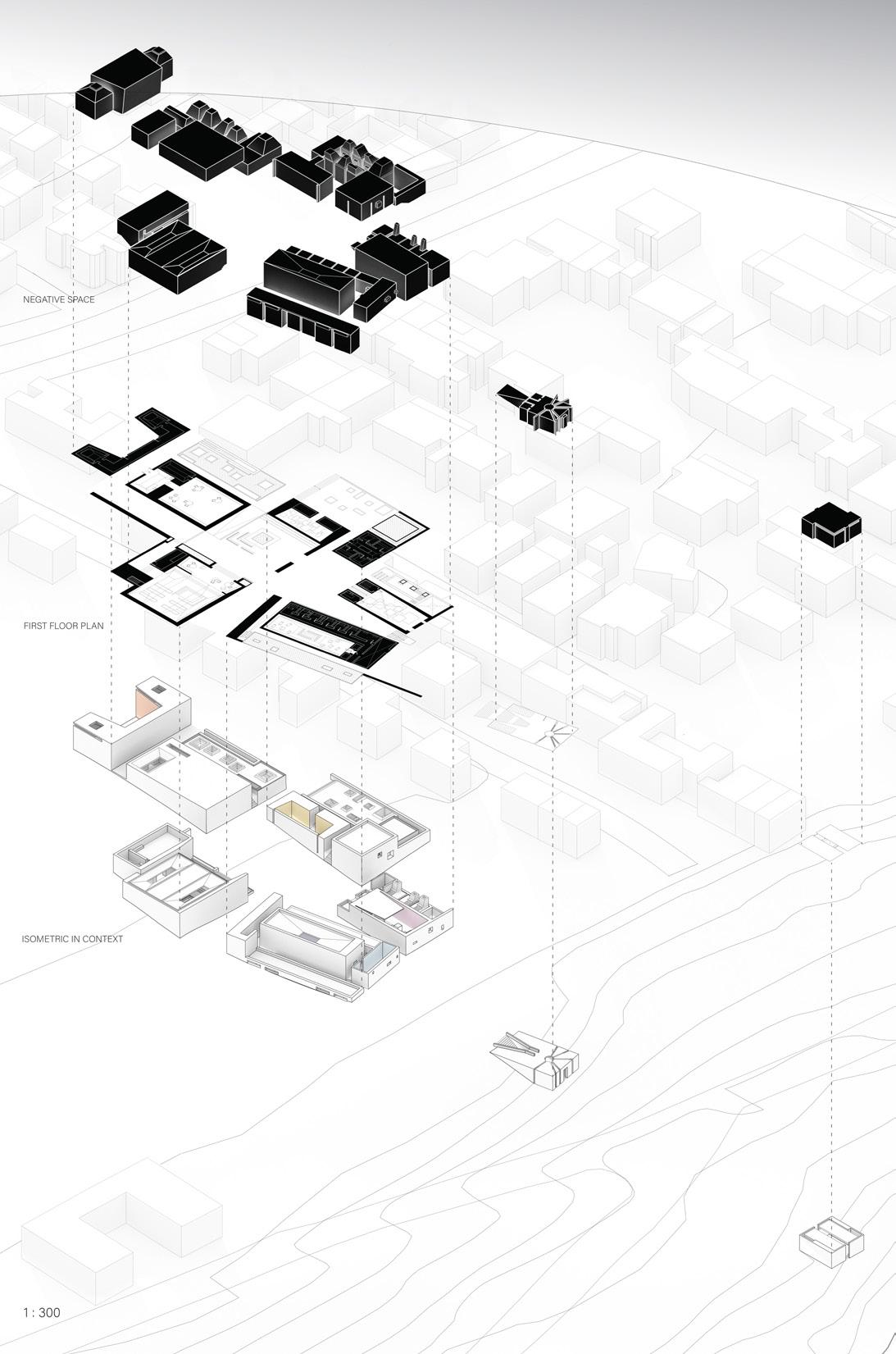 From the site images and the analysis of soil conditions, it was discovered that there were interesting rock formations no more than a foot down. It was then that the extraction of the geological heritage that pushed the project forward. The idea of digging down and extracting this heritage on the site allowed both the building to situate itself on the site but also allow the land to intersect and overtake the man made elements.