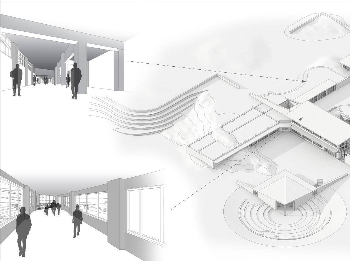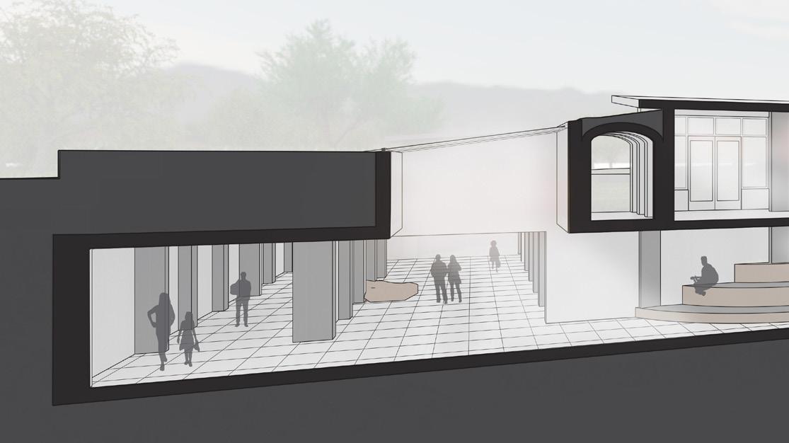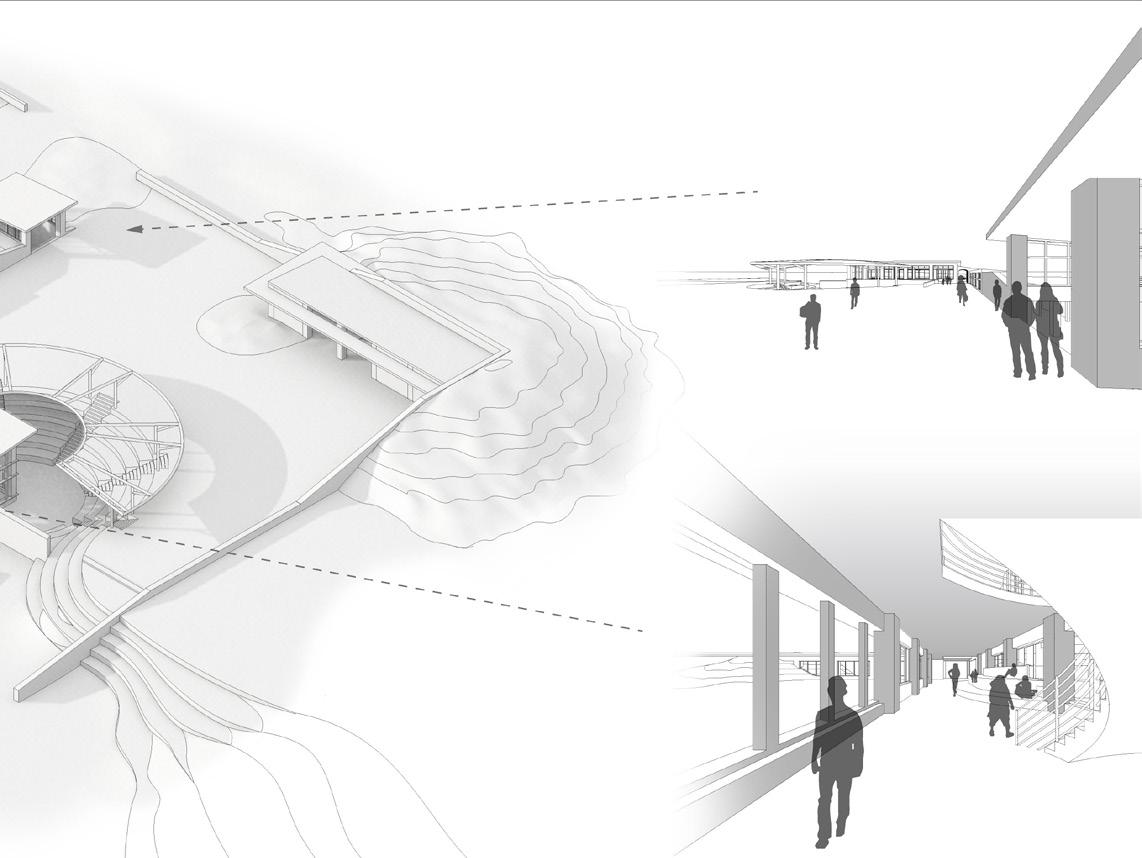 From that, there is a push and pull between the existing land formations coming in and taking over spaces and the building pushing back against the existing land. The goal of this is to create unique gallery and studio spaces that foster interconnection between the artist, the art they produce, and the land that they are forced to interact with.