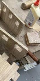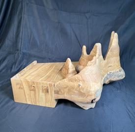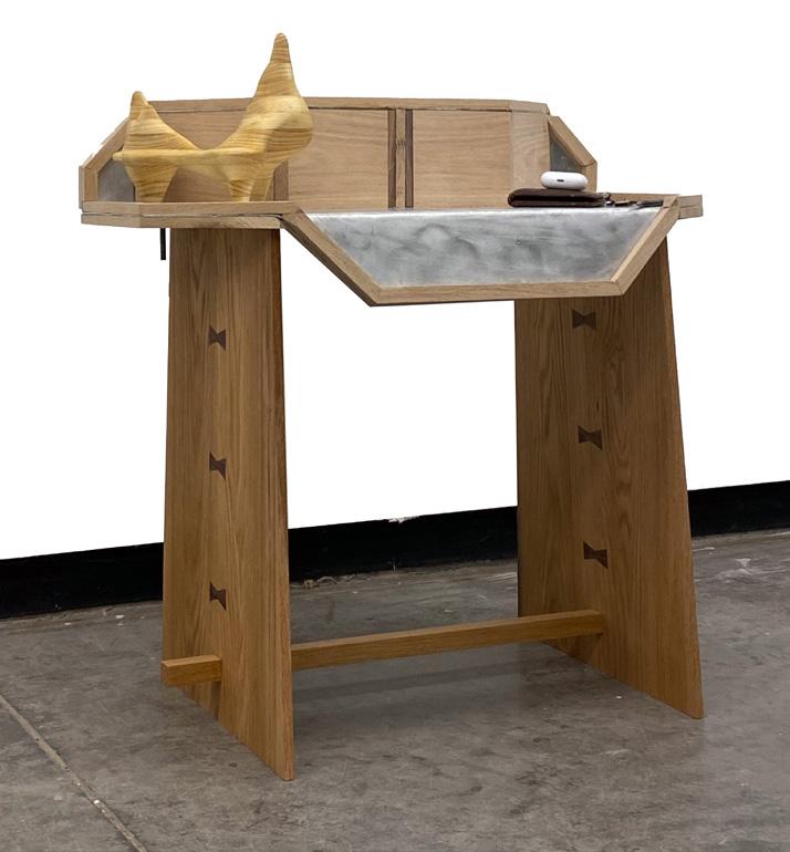 This project was designed around a found object, a top sign, which proved quite difficult to design around the octagonal shape. All wood elements are hand cut with pull saws and chisels.