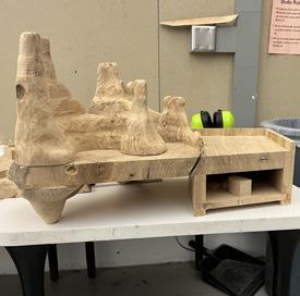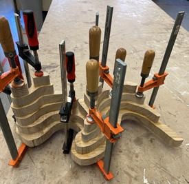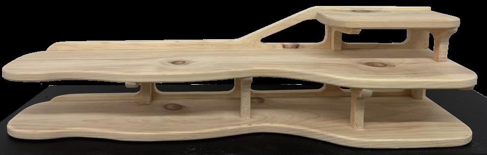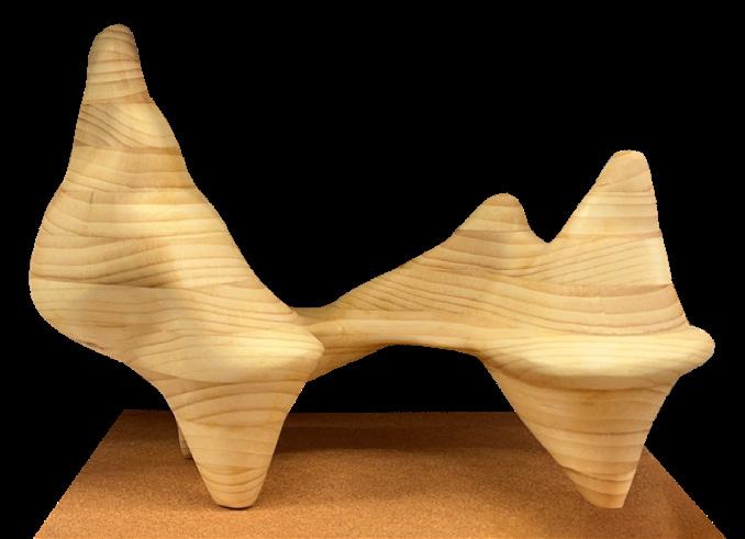 This project was to create an organic form from a 4 foot 6”x 3/4” board through the process of laminating layers and then shaping it into a smooth form. The challenge was mapping out the form to make the most of the material. The production process of this was very interesting its ability to potentially be scaled up into occupiable forms like chairs, benches, etc.