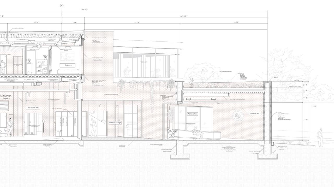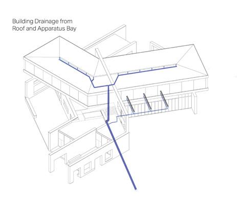 Other systems such as HVAC, radiant floor heating, and drainage for the roof and apparatus bays were also modeled to ensure that everything worked together.