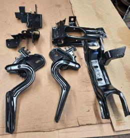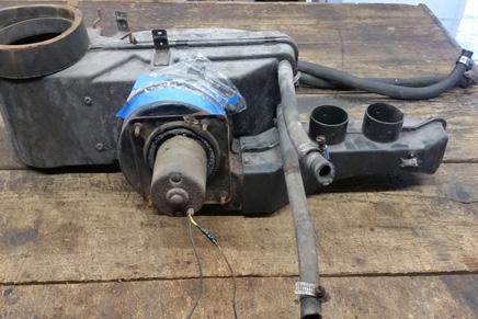The restoration process of the heater core, original core was punctured and all internal mechanisms were ceased. All pieces were de-rusted and painted to prevent further corrosion. It was completely reassembled with all new hoses and is ready for installation back into the car. Every single component is being completely rebuilt and refinished.