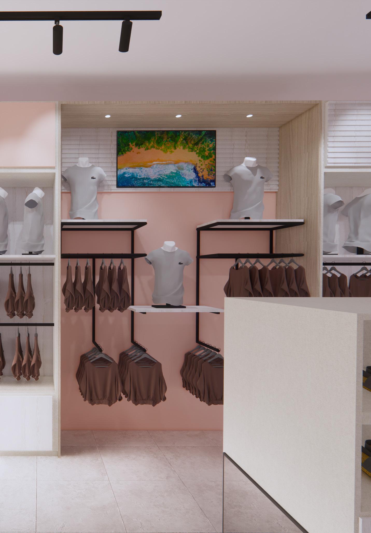 En este proyecto se empleó colores y materiales sutiles con la finalidad de brindar protagonismo a la indumentaria que se exhibe en la Boutique sin dejar de la experiencia del cliente.
