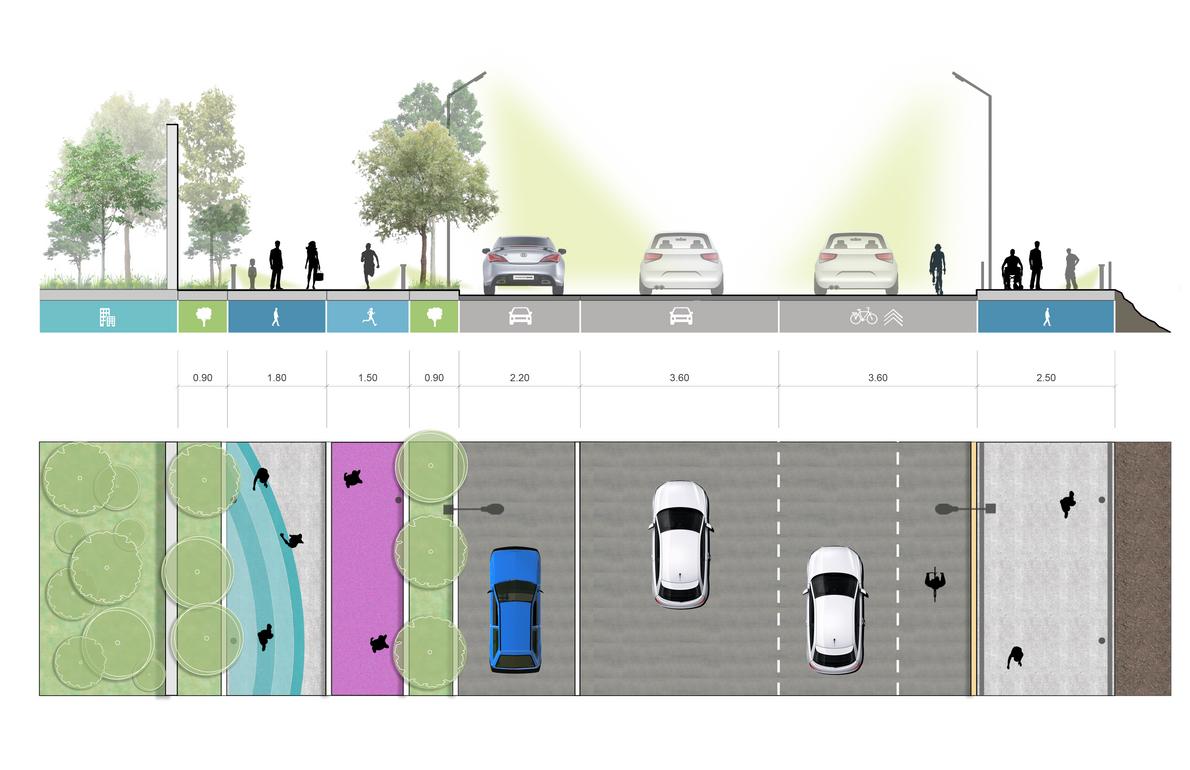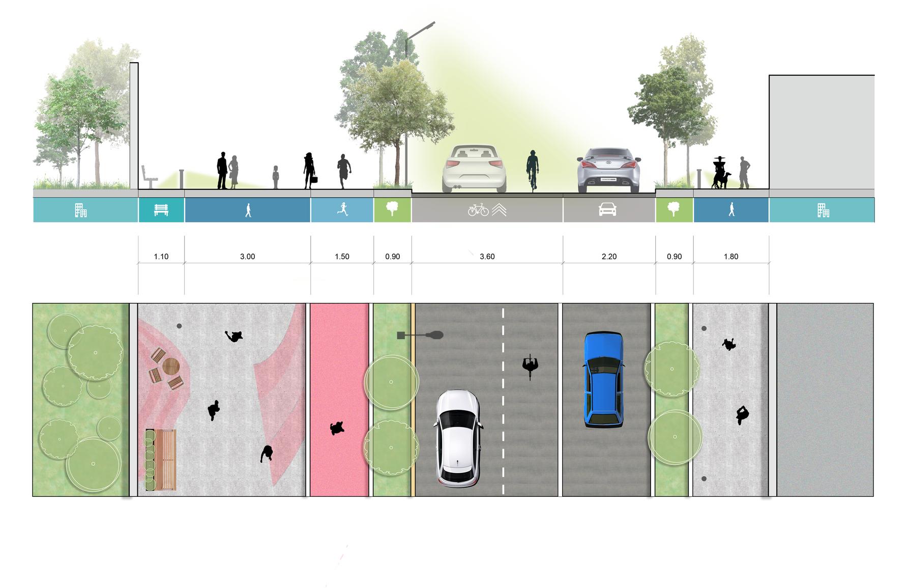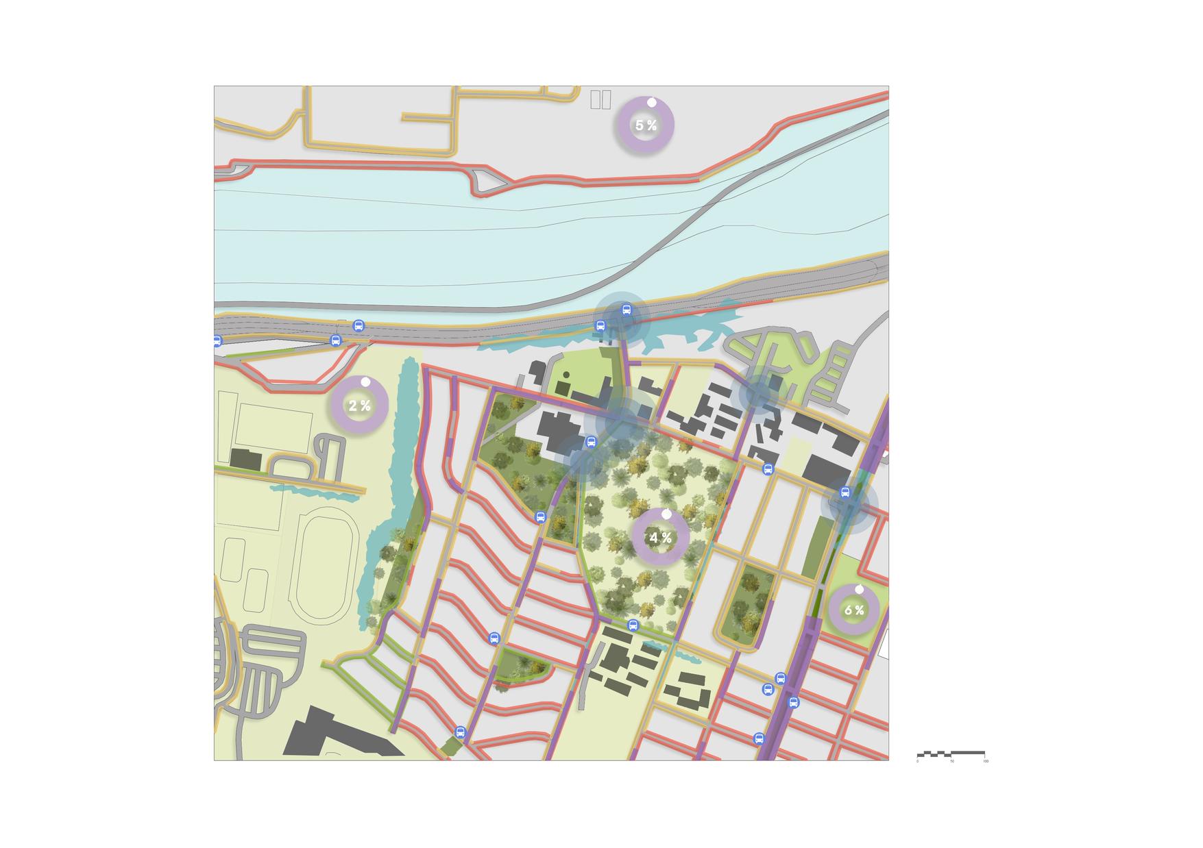 El Análisis de Sitio forma parte de cada decisión del plan maestro Dentro de estos se encuentra las paradas, las inclinaciones en cada calle, nodos de confluencia, porcentajes de personas con discapacidad,vacíos, así como análisis de banquetas Cada aspecto se trata de solucionar por medio de marcos legales y metodológicos de normas, manuales y reglamentos.