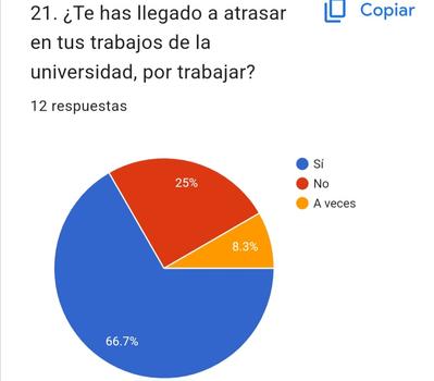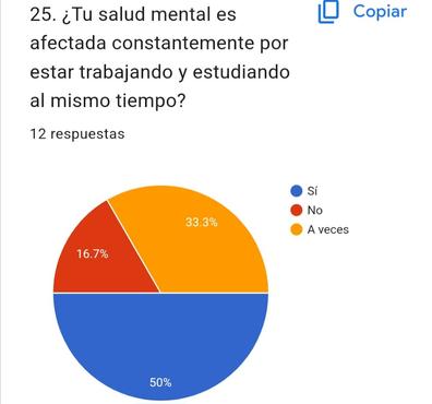 Esto con el objetivo de saber que tanto se les dificulta a los jóvenes universitarios trabajar y estudiar al mismo tiempo, si esto perjudica sus estudios, su salud mental o tienden a posponer tiempos para la realización de sus trabajos pendientes.