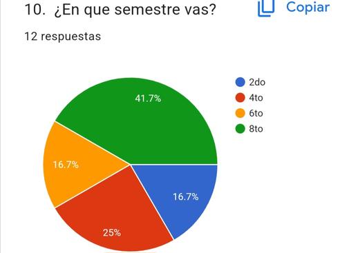 QUE VA EN OCTAVO, EL 25% VA EN CUARTO, EL 16% ESTA EN SEXTO Y EL OTRO 16% VA EN SEGUNDO SEMESTRE.