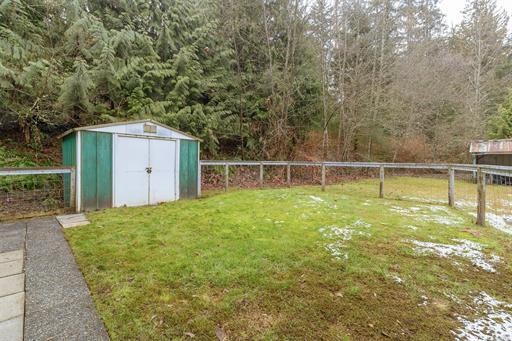 This bright and spacious home is situated on 1.8 acres of land in one of Mill Bay’s most sought-after neighbourhoods. Ideally located on a rural, no-thru road, you’ll love the privacy of this peaceful acreage, with easy access for commuting to Victoria. Waiting for you to bring your personal touches, this residence is the perfect blank canvas overflowing with potential. The main level offers an open concept kitchen & living area, 2 bedrooms & 1 bathroom. Enjoy the sounds of the neighbouring creek from the generous-sized deck as you look out to the tree-lined backyard. Downstairs you will find a walk-out living room, 2nd kitchen, 2 bedrooms, 1 bathroom, laundry & a workshop, or storage area. The property also features an attached workshop & additional outbuildings, previously set up for horses. RR3 zoning allows for a legal suite or a carriage home. Just minutes to the Mill Bay Marina, Shawnigan Lake, amenities, recreation & fantastic private & public schools, this is a true must-see.