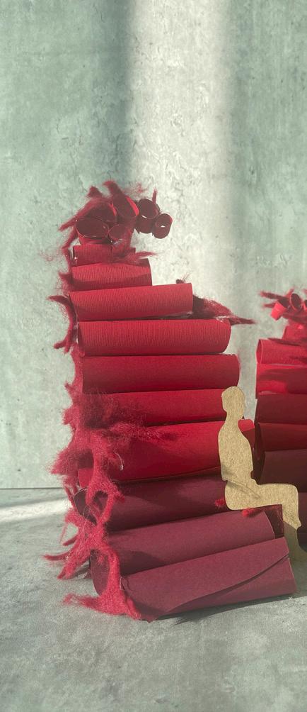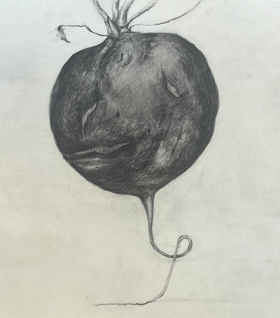 The end goal of this project was to “use nature as teacher” by studying + documenting a raddish for a prolonged period of time. The observed form, texture, and color of said raddish informed the design for the seating arrangement pictured on the right.