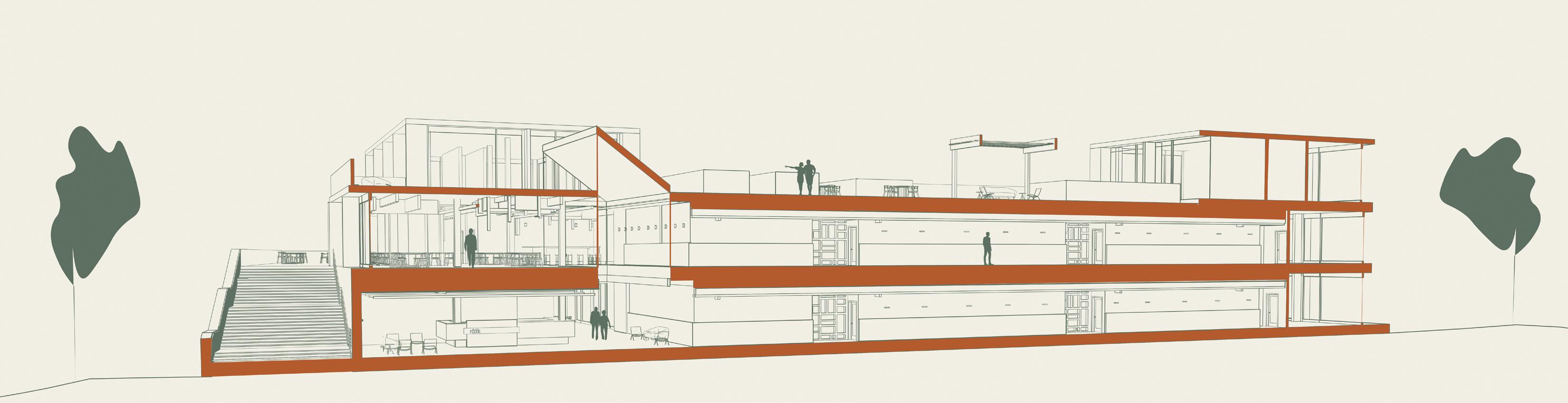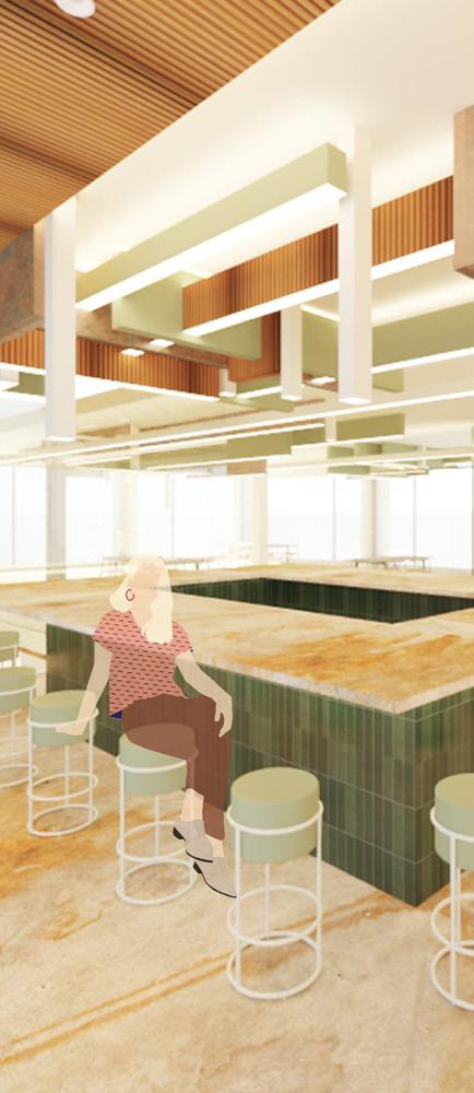spaces for a variety of work flow styles, flexible furnishings, an open concept feel, paired with a spread amenity plan, and ample casual meeting spaces/ monumental moments to encourage interaction.