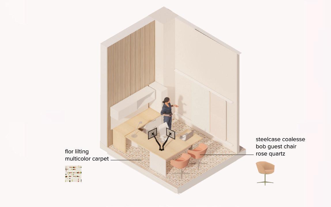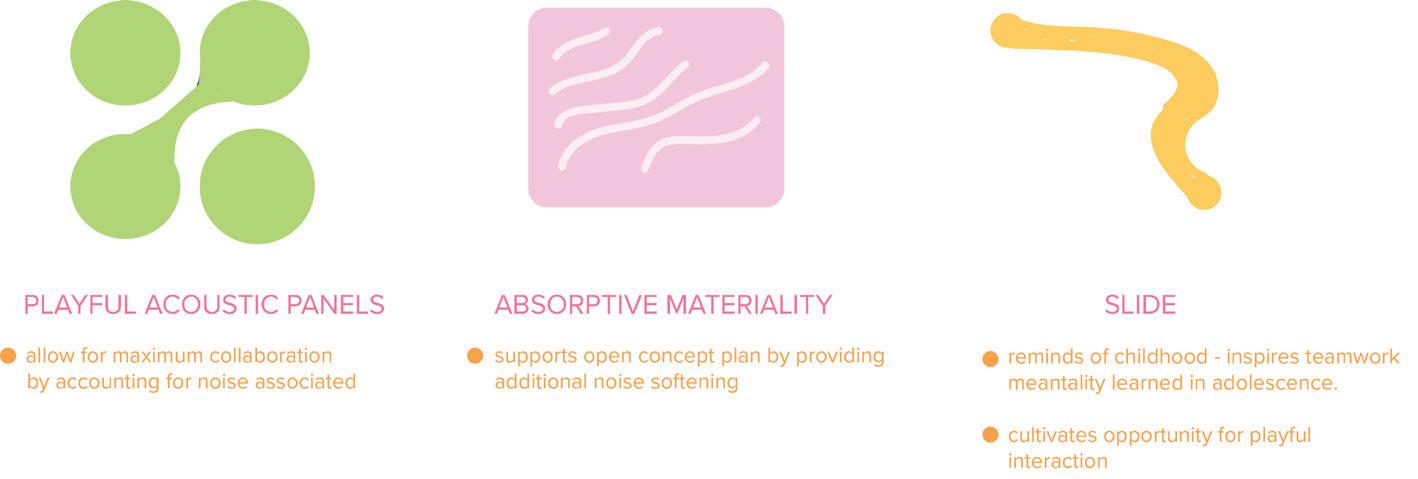 -The implimentation of absorbtive materiality throughout the office to allow for maximum collaboration with minimum noise distraction